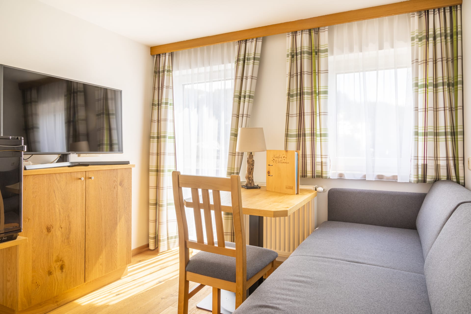Sie wohnen in komfortablen Zimmern und Appartements mit freien Blick auf die faszinierende Naturlandschaft in und um Filzmoos. Unsere neue 120 m² Wohlfühloase mit Blocksauna im Freien, Dampfbad, Wärmeliegen, Infrarotkabine, Panoramaruheraum und Erlebnisduschen, Massageliege lädt zum Relaxen und Reinigen von Körper, Geist und Seele ein. Hier können Sie die Strapazen des Alltags vergessen und neue Kräfte für Ihr Wohlbefinden tanken.