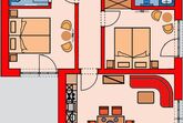 Appartement Lilly, ca. 61 m2 groß, 2 getrennte Schlafzimmer, 1 ausziehbare Couch, 2 Badezimmer (1x mit Badewanne, 1x mit Dusche, WC), komplett ausgestattete Küche. Schöner Balkon. Für Familien mit Kindern bis zu 6 Personen möglich;