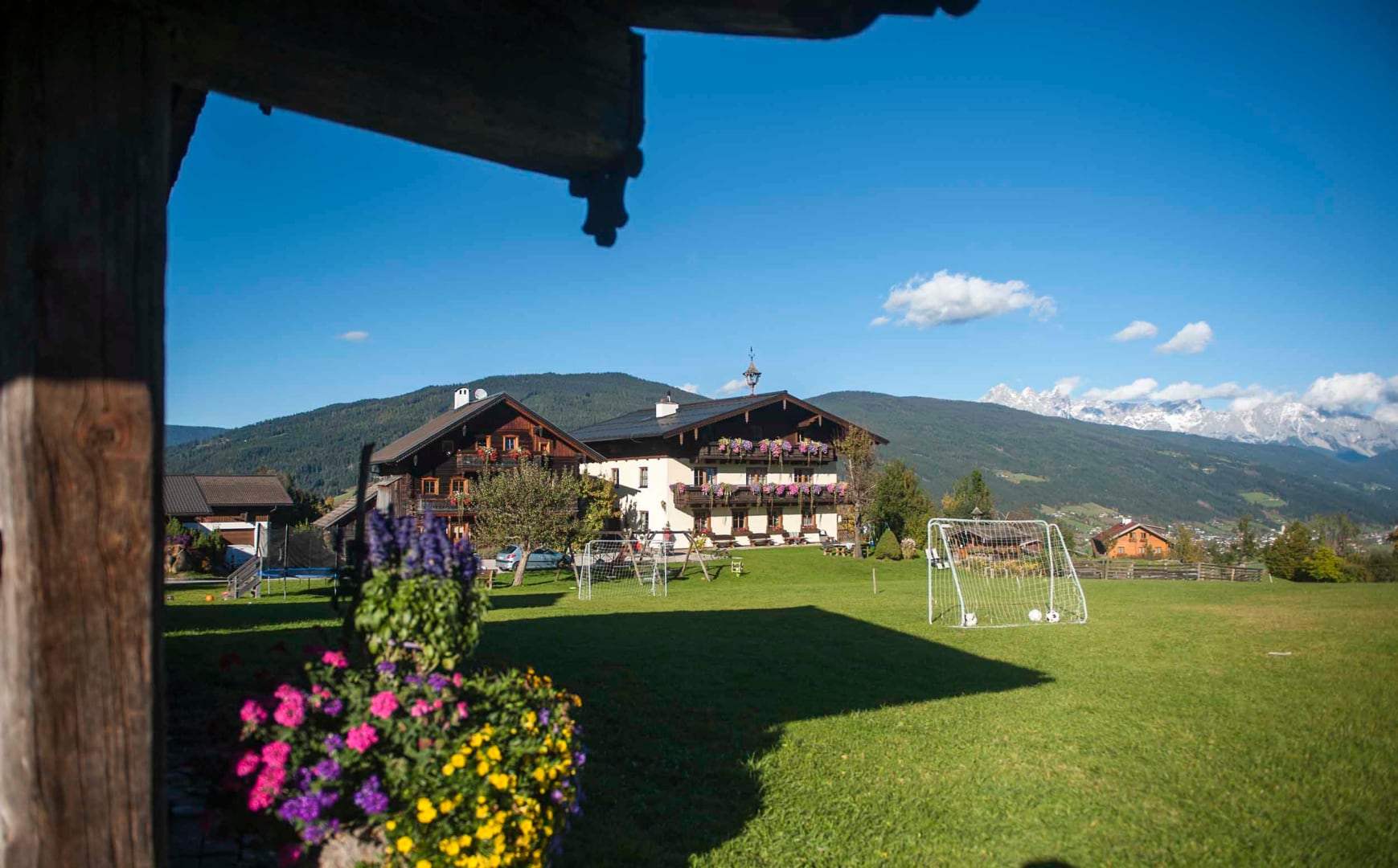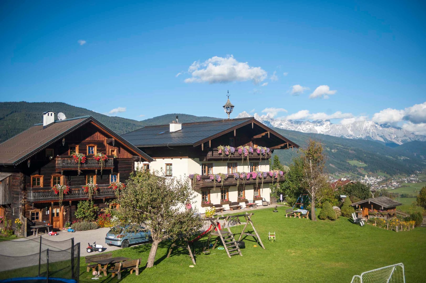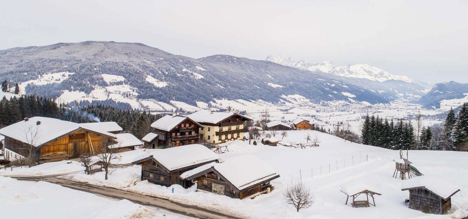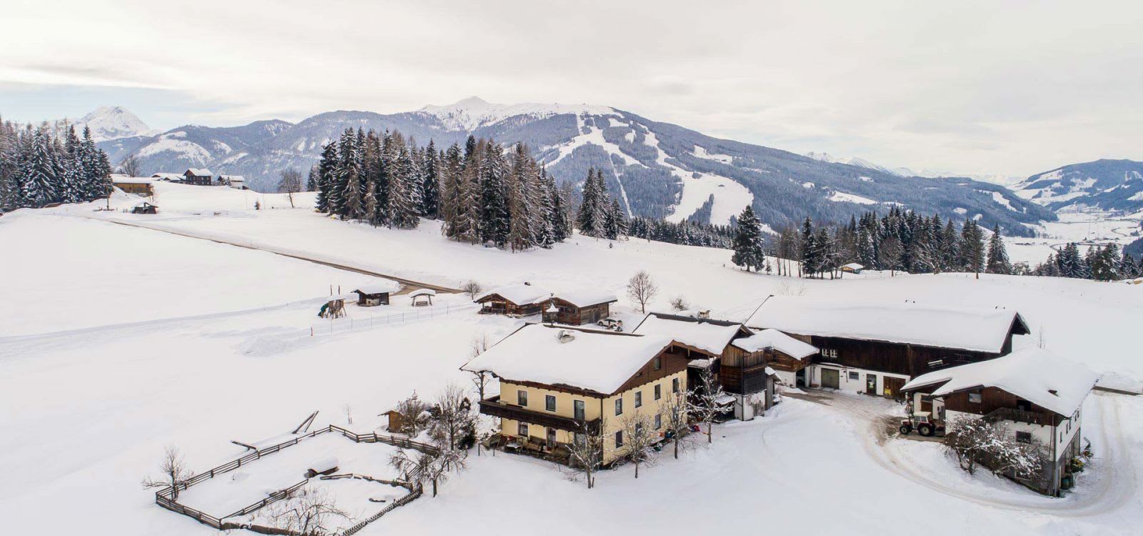 Unser Hof liegt auf einem kleinen Bergplateau mit Rundum-Ausblick auf die verschneite Salzburger Bergwelt. Hier können Sie sich in Ruhe entspannen während Ihre Kinder sich auf der hauseigenen Rodelbahn austoben. Im nächsten Ort Flachau können Sie im Skigebiet mit modernsten Skianlagen den Berg bezwingen, natürlich fährt täglich der gratis Skibus zu unserem Hof und bringt Sie zur 2,5 km entfernten Talstation. Aber auch weitere Skigebiete der Ski Amadé befinden sich in unmittelbarer Nähe: Altenmarkt-Zauchensee, Radstadt, Eben, Flachauwinkel, Schladming, Planai, Reiteralm, Obertauern, Filzmoos, Gastein, St.Johann sind mit dem gleichen Skipass zu befahren. Wer gern andere Sportarten ausprobiert, wie Langlaufen, Rodeln, Tourengehen, usw. hat auch unzählige Möglichkeiten!