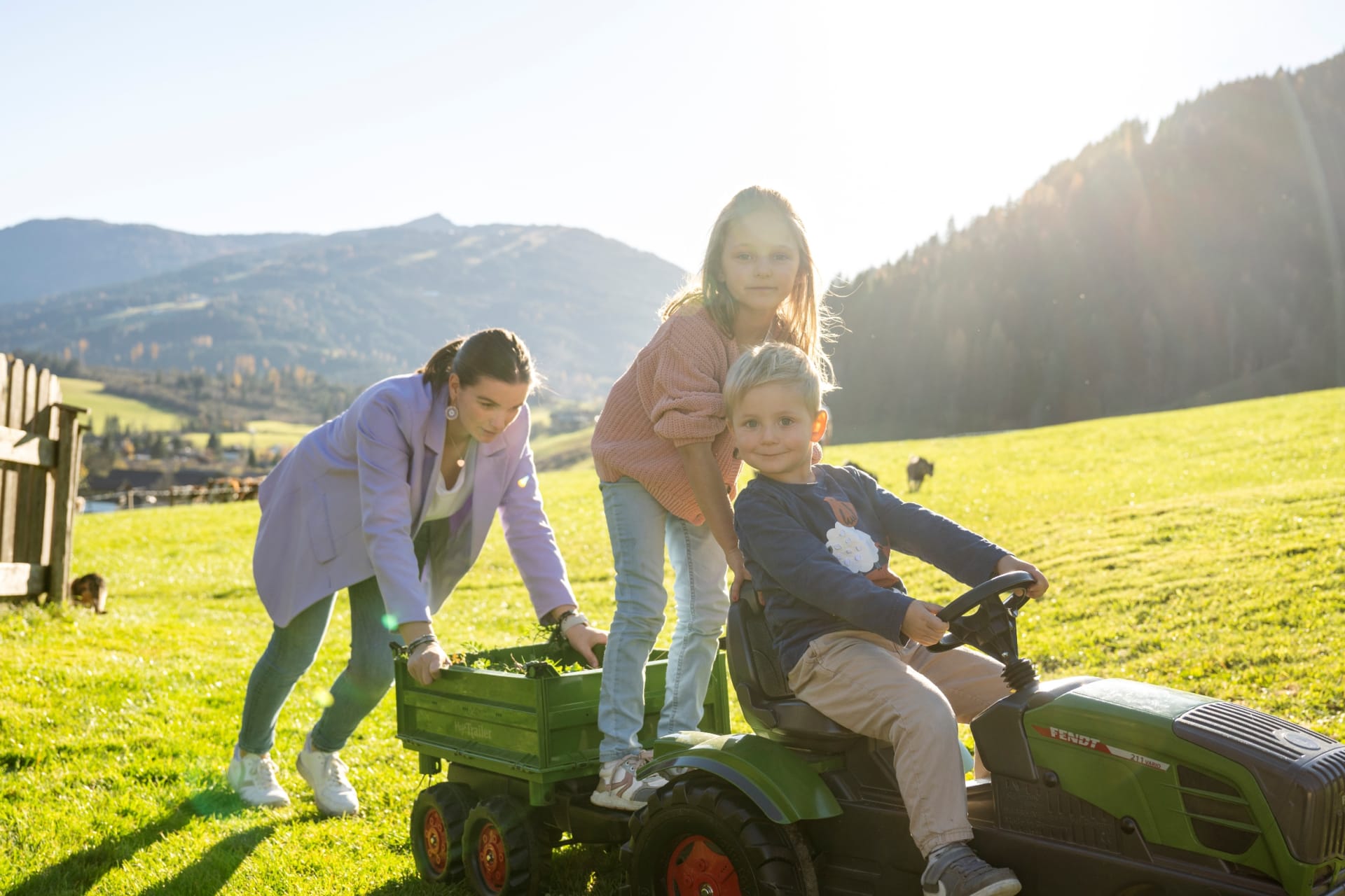 Im Winter werden die schneebedeckten Felder zu einem einzigen Spielplatz umfunktioniert. Schneemannbauen, Schneeballschlachten und viele weitere tolle Abenteuer warten auf unsere kleinen Gäste. Besonders beliebt ist die eigene Rodelbahn, die wir für die Kinder unserer Gäste im Winter anlegen.