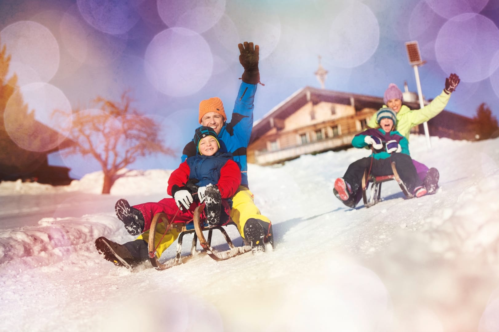 Im Winter werden die schneebedeckten Felder zu einem einzigen Spielplatz umfunktioniert. Schneemannbauen, Schneeballschlachten und viele weitere tolle Abenteuer warten auf unsere kleinen Gäste. Besonders beliebt ist die eigene Rodelbahn, die wir für die Kinder unserer Gäste im Winter anlegen.