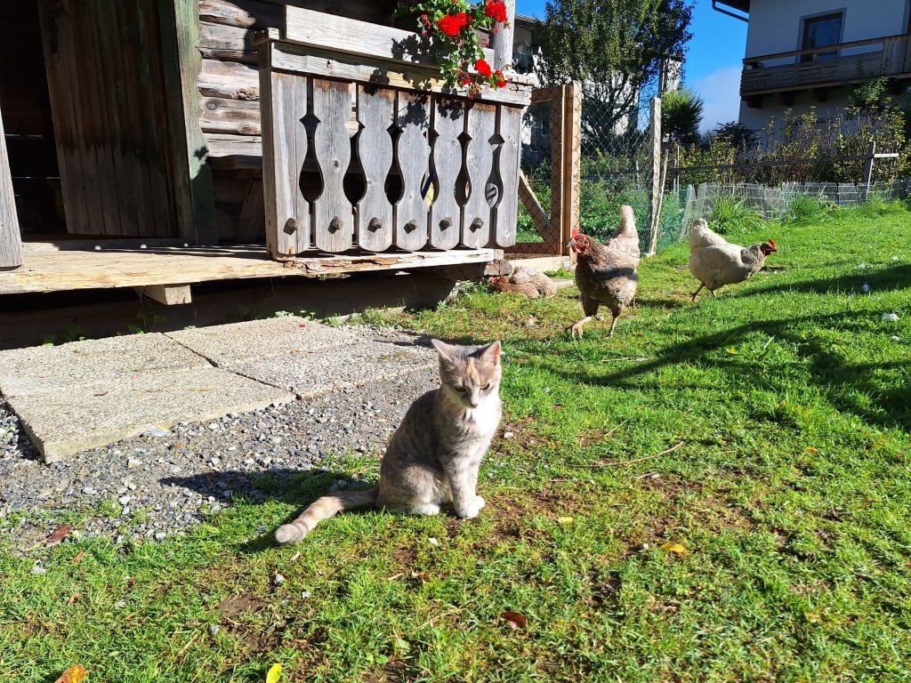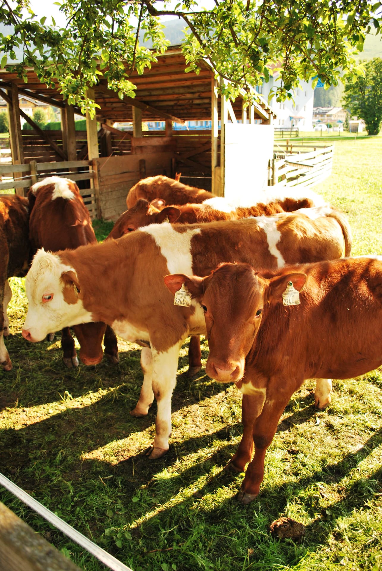 Wir bewirtschaften einen Bio-Bauernhof im Herzen von Flachau. Vor einigen Jahren haben wir uns auf Ochsenmast spezialisiert. Von Juni bis September weiden unsere Tiere auf der Alm. Zu Hause grasen ein paar Kälber. Unsere Hühner versorgen uns mit frischen Eiern, eine Katze huscht manchmal vorbei und die Schafe und Hasen genießen im Sommer die Zeit im Freien.