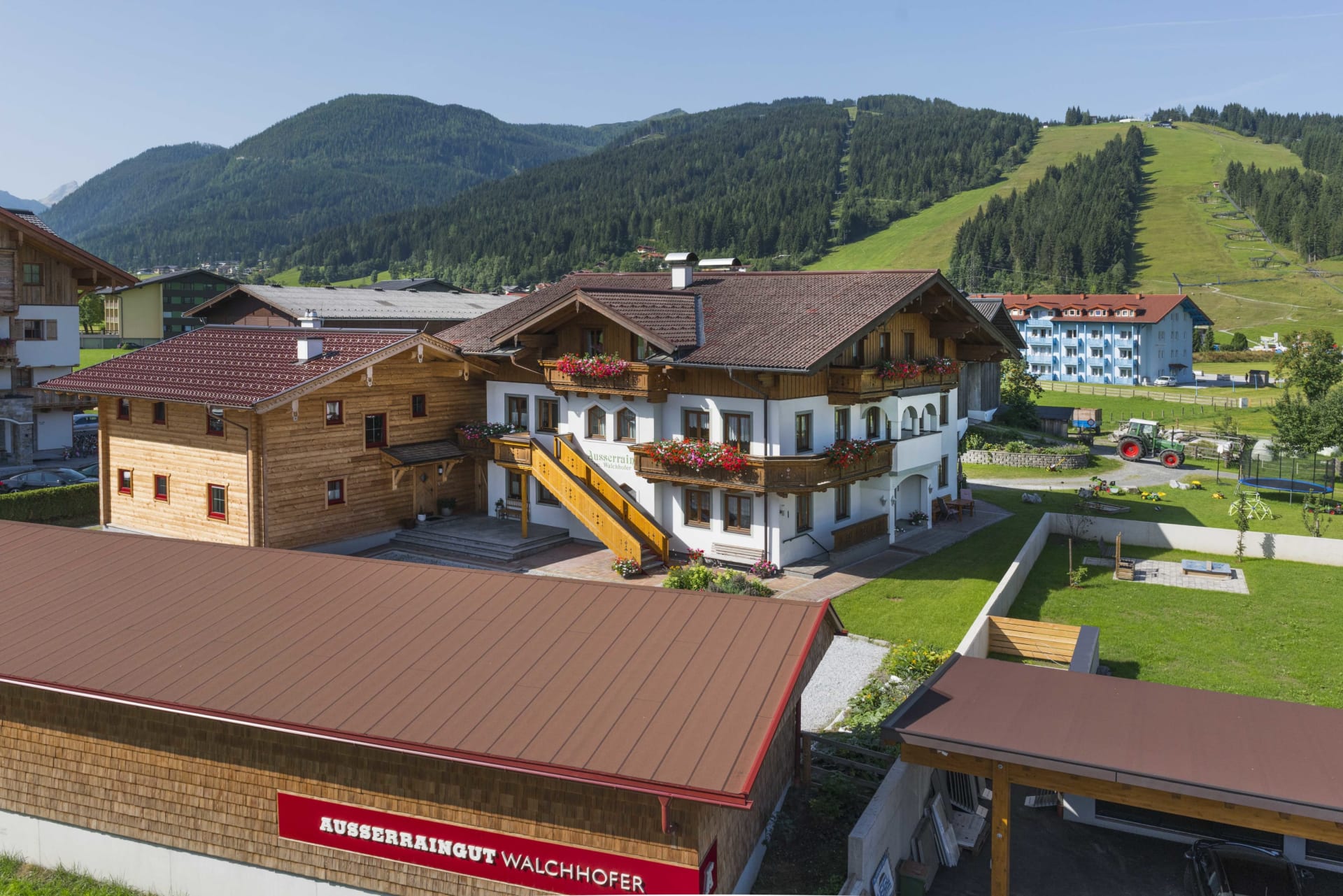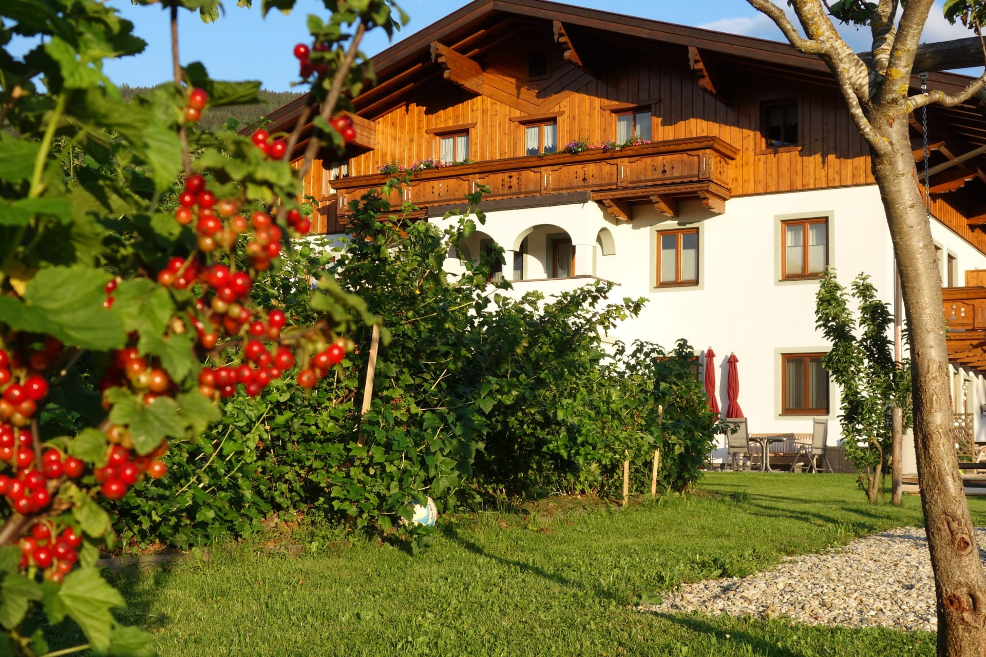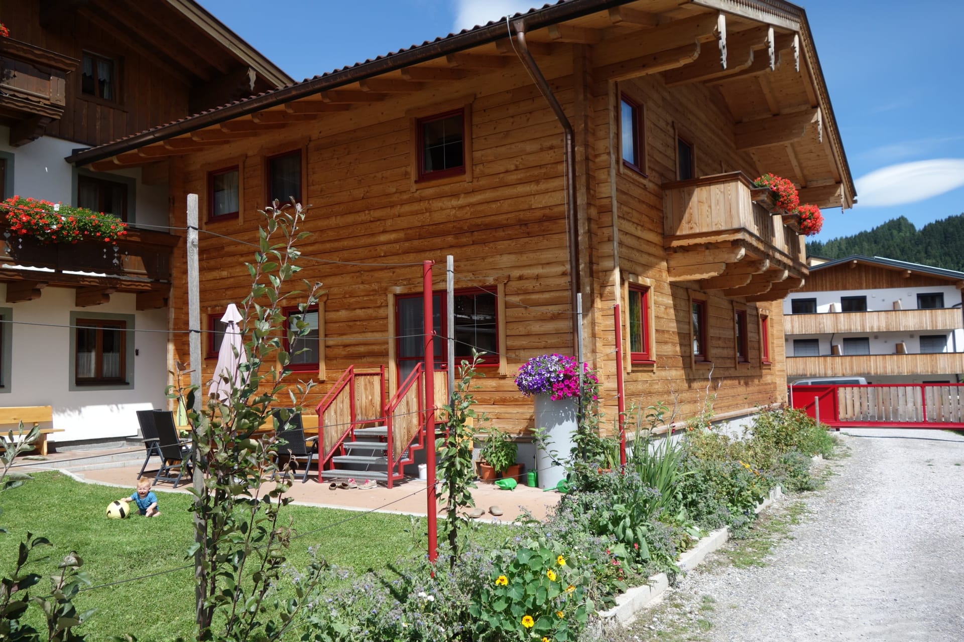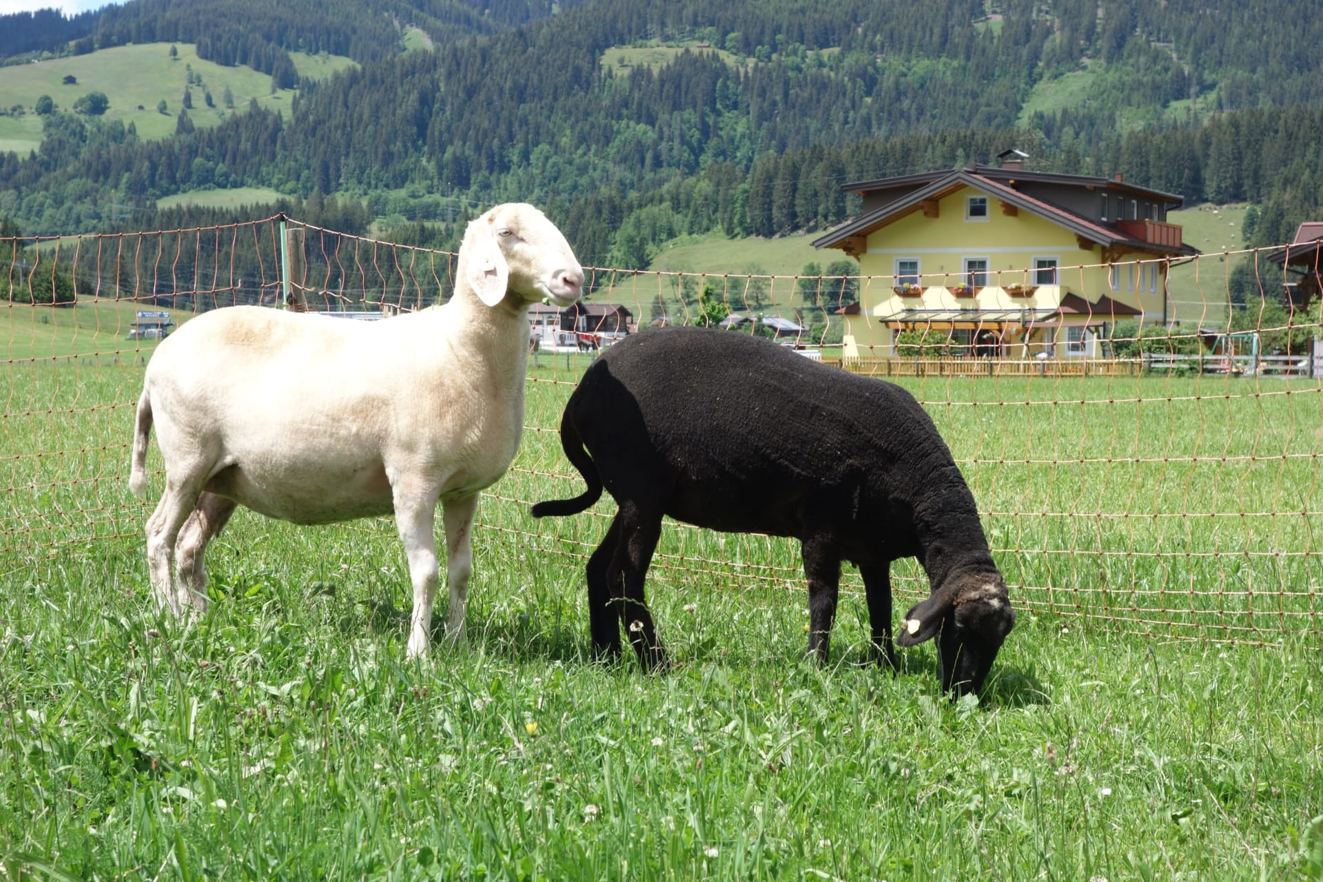 Wir bewirtschaften einen Bio-Bauernhof im Herzen von Flachau. Vor einigen Jahren haben wir uns auf Ochsenmast spezialisiert. Von Juni bis September weiden unsere Tiere auf der Alm. Zu Hause grasen ein paar Kälber. Unsere Hühner versorgen uns mit frischen Eiern, eine Katze huscht manchmal vorbei und die Schafe und Hasen genießen im Sommer die Zeit im Freien.