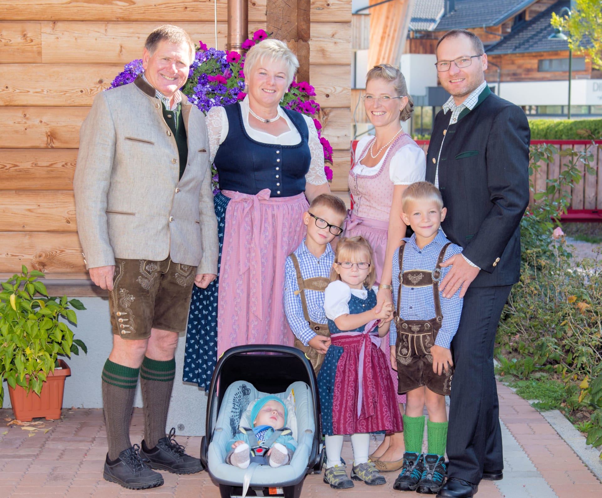 Einzigartig ist die kleine Landtechnik-Werkstätte bei uns am Hof. Täglich stehen neue Maschinen vor dem Tor und warten auf ein Service von Martin. Maria ist meist im Gemüsegarten anzutreffen, weil vor allem im Frühjahr die Beikräuter schneller wachsen als die zarten Gemüsepflänzchen. Unsere 4 Kinder David, Gabriel, Karoline und Sebastian kümmern sich um den Fuhrpark für die Kleinen. Martin sen. kümmert sich um die Tiere am Hof und Kathi ist für das Wohl unserer Gäste zuständig.