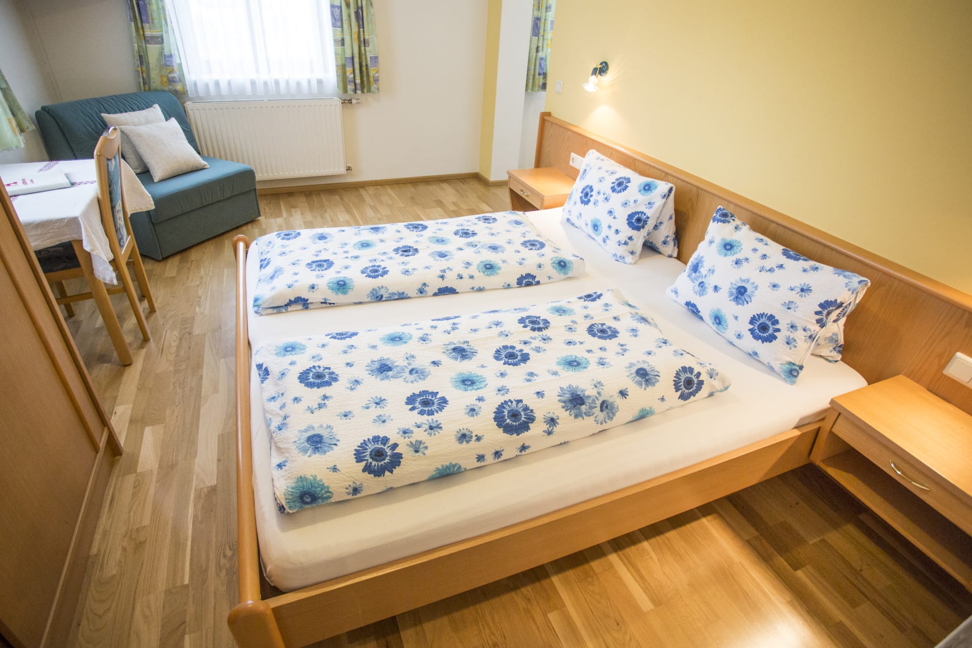 Einzigartig ist die kleine Landtechnik-Werkstätte bei uns am Hof. Täglich stehen neue Maschinen vor dem Tor und warten auf ein Service von Martin. Maria ist meist im Gemüsegarten anzutreffen, weil vor allem im Frühjahr die Beikräuter schneller wachsen als die zarten Gemüsepflänzchen. Unsere 4 Kinder David, Gabriel, Karoline und Sebastian kümmern sich um den Fuhrpark für die Kleinen. Martin sen. kümmert sich um die Tiere am Hof und Kathi ist für das Wohl unserer Gäste zuständig.