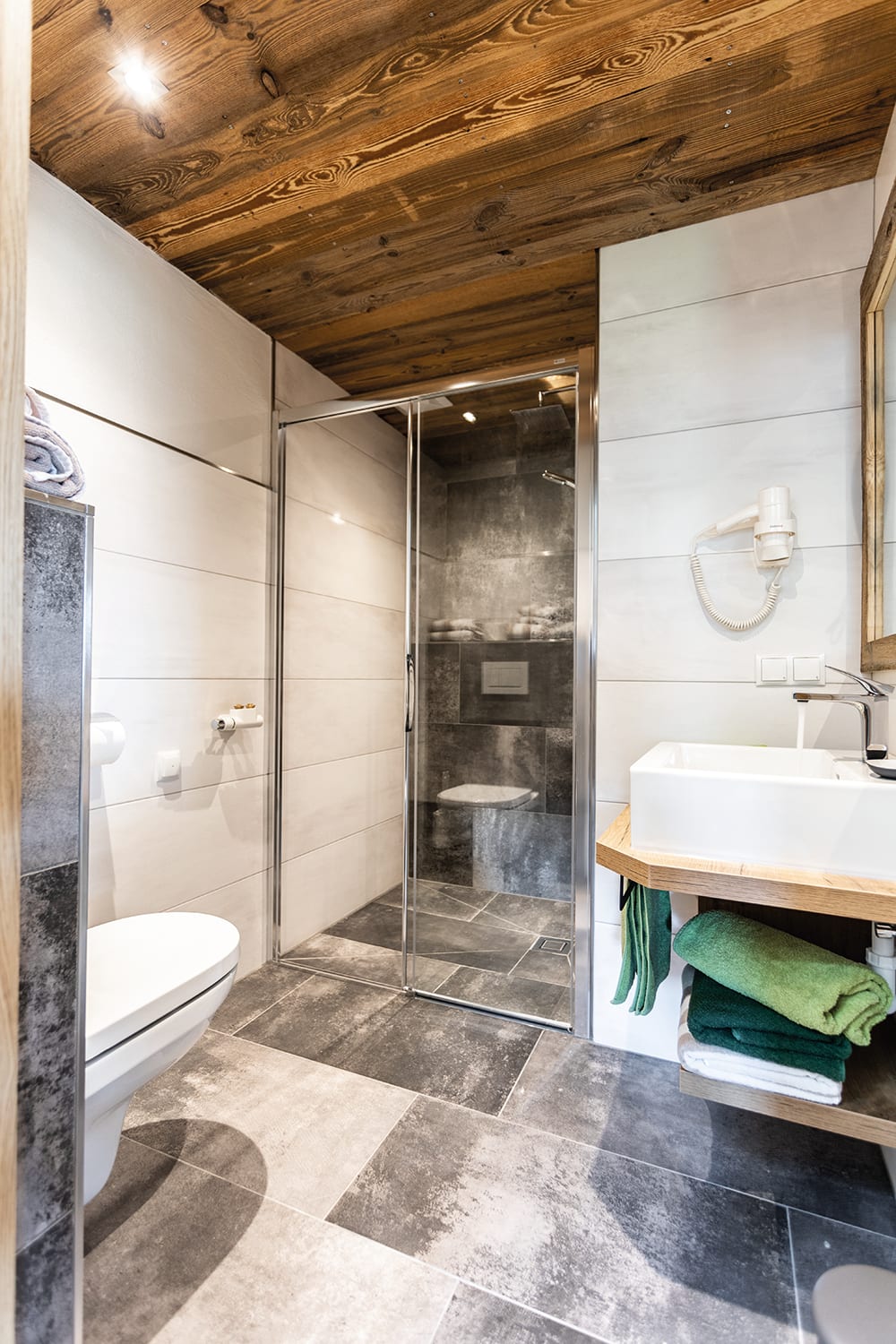 • 2 Badezimmer mit Dusche/WC und Fön