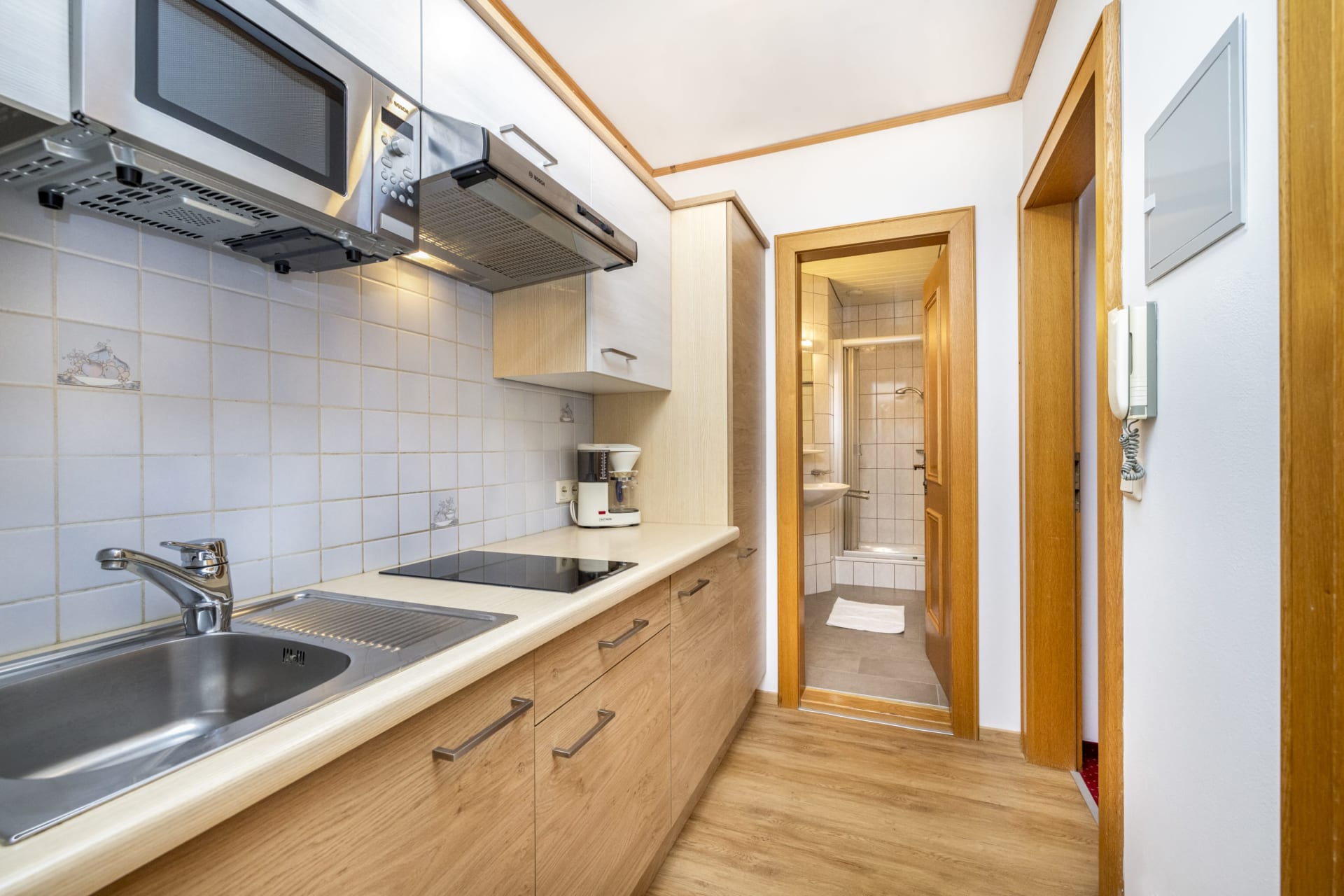 • Vollausgestattete Küche mit 2 Kochplatten, Kühlschrank, Mikrowelle, Kaffeemaschine, Toaster, Geschirrspüler, Wasserkocher