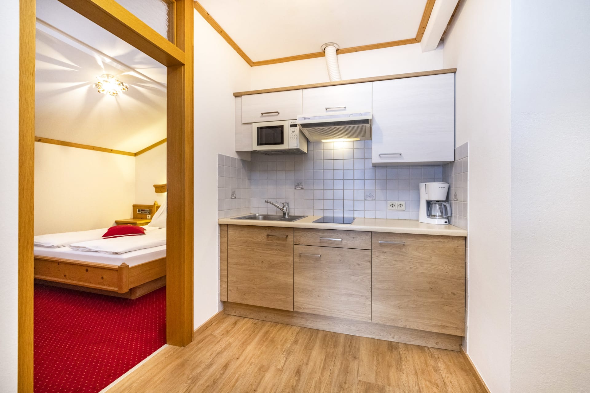 • Vollausgestattete Küche mit 2 Kochplatten, Kühlschrank, Mikrowelle, Kaffeemaschine, Toaster, Geschirrspüler, Wasserkocher