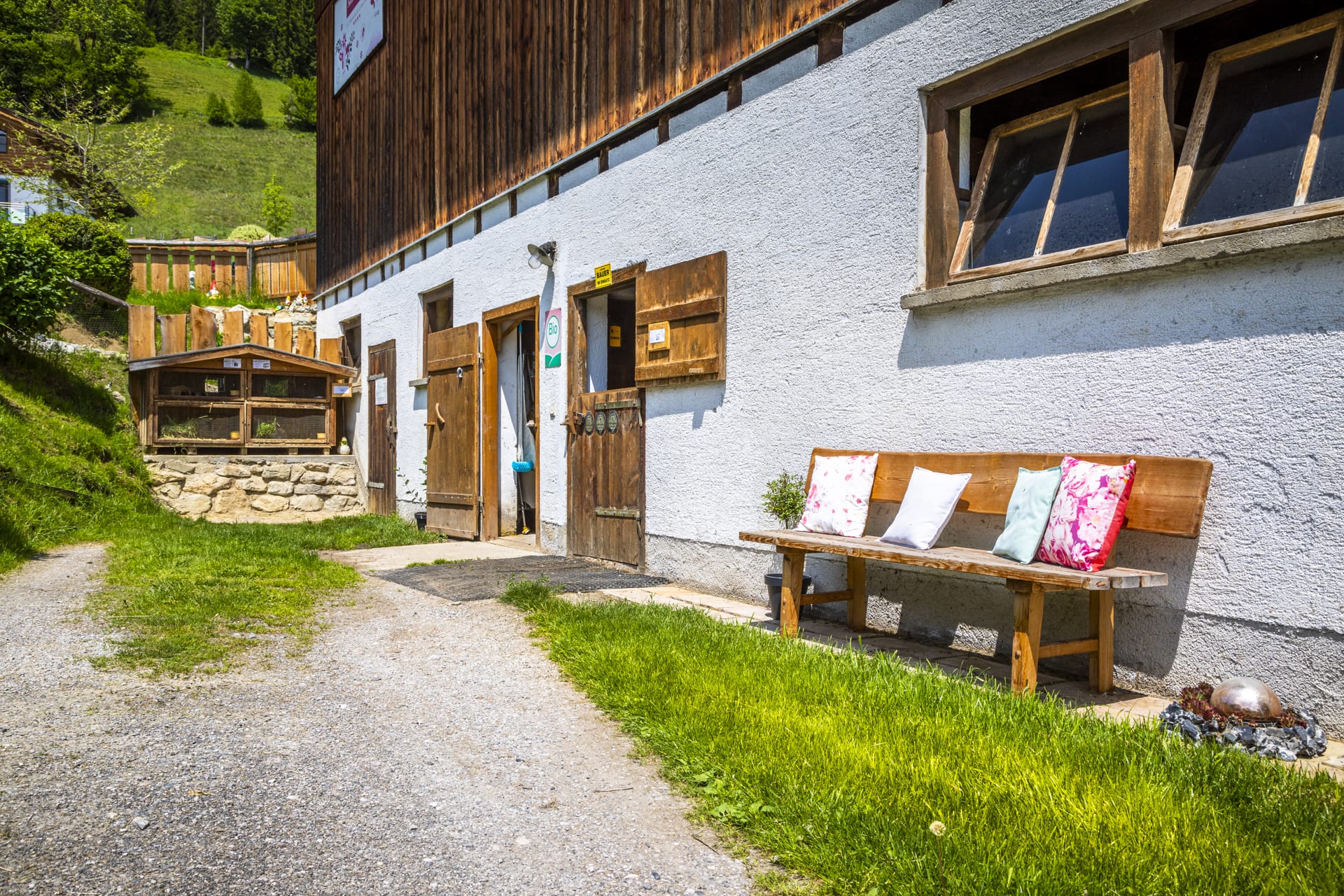 Die Kühe verbringen den Sommer auf unserer Alm in Flachauwinkl, weshalb sie am Hof nicht anzutreffen sind. Nichtsdestotrotz erwarten die kleinen Gäste viele Streicheltiere, die sich auf Massageeinheiten freuen.