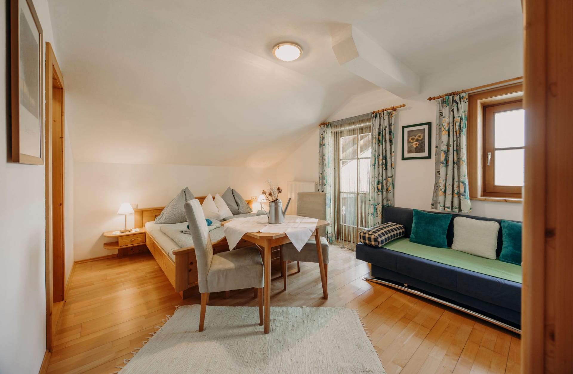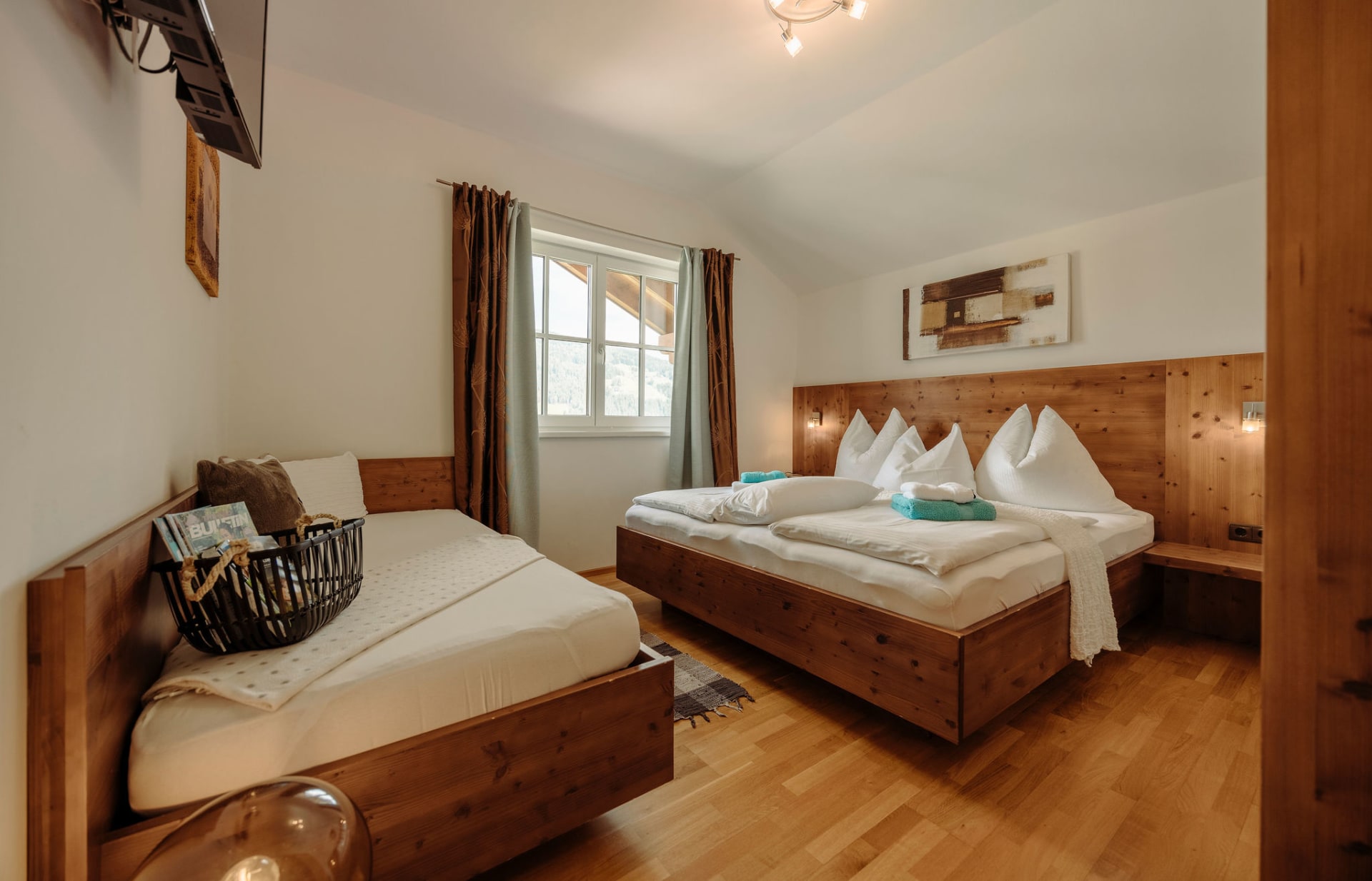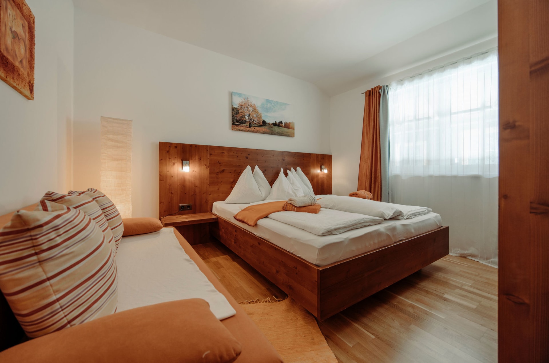 Im Appartement befinden sich zwei Schlafzimmer, ein Doppelzimmer mit Einzelbett und ein Doppelzimmer. Balkon mit herrlichem Ausblick!