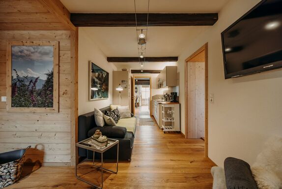 Neues, großes und sehr schönes Nichtraucherappartement im 1. Stock des Bauernhauses mit Balkon und großer Dachterrasse inkl. Liegestühlen und Außenessbereich!