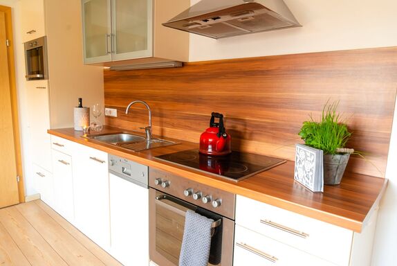 • Küche mit kompletter Ausstattung (Geschirrspüler, Ceranfeld, Backofen, Mikrowellenherd, Kühlschrank, Kaffeemaschine, Teekocher, Eierkocher …)