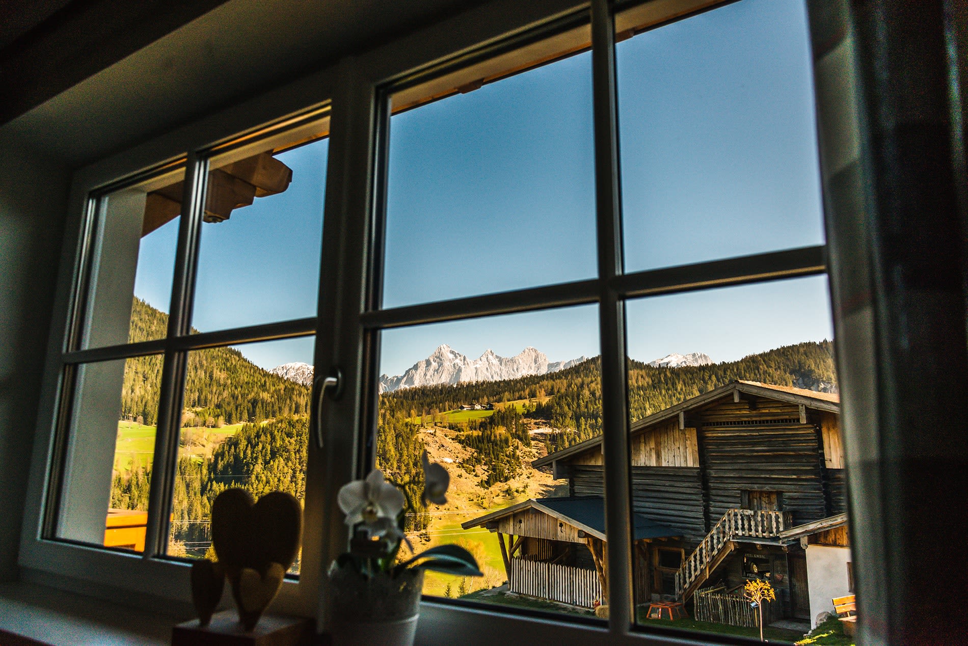 Das Genussappartement mit Blick auf das Dachsteingebirge mit Torstein, Mitterspitz und Dachstein.
