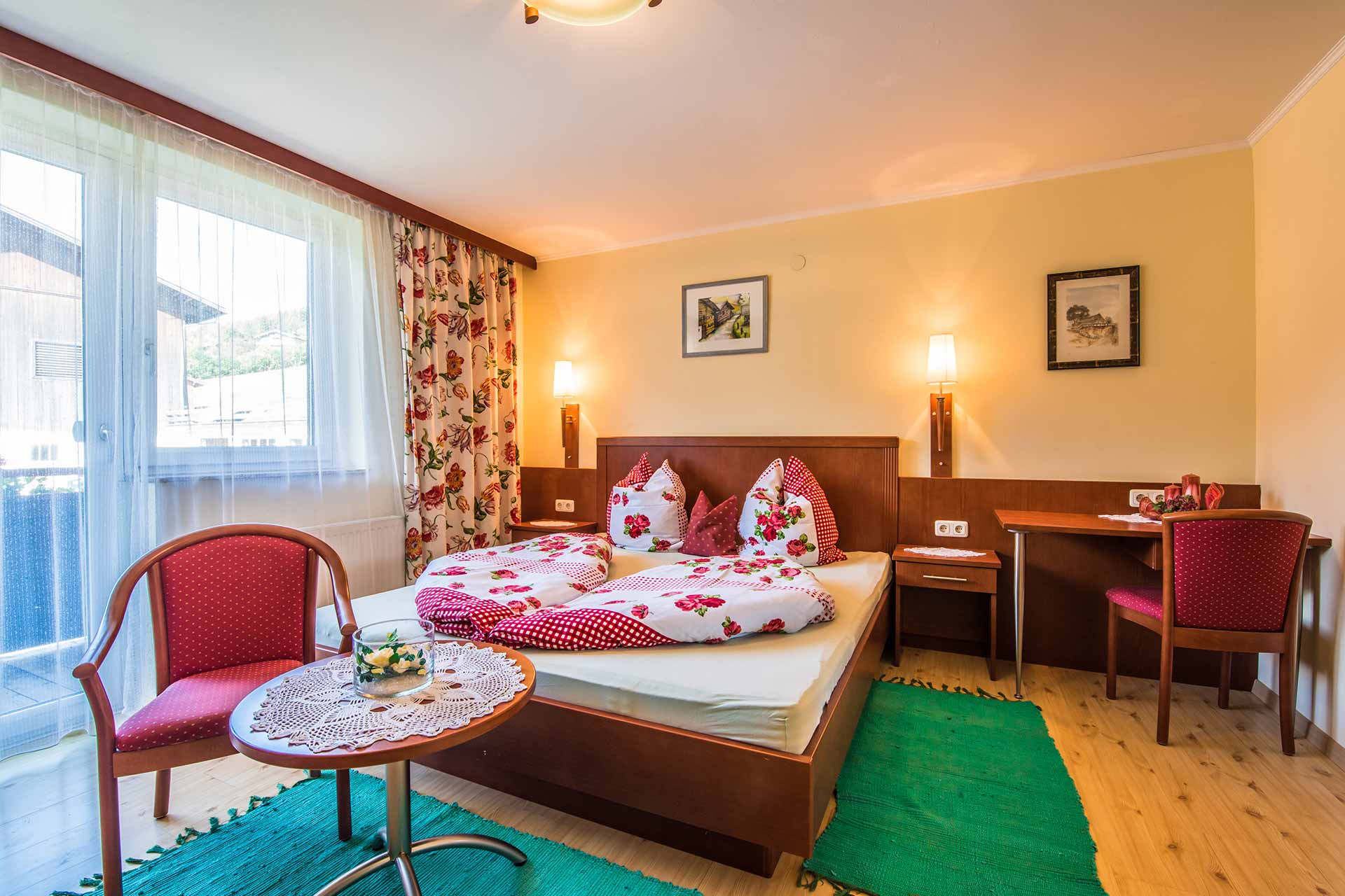 Die Zimmer unserer Pension sind liebevoll eingerichtet. Unser heimisches Holz finden Sie überall. Die Zimmer sind mit Doppelbett ausgestattet. Dusche, WC, TV und Balkon vervollständigen die Zimmer.