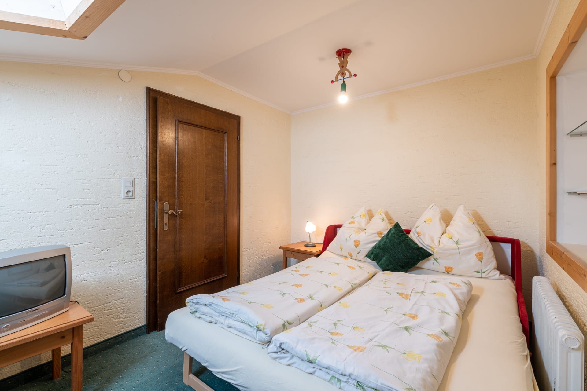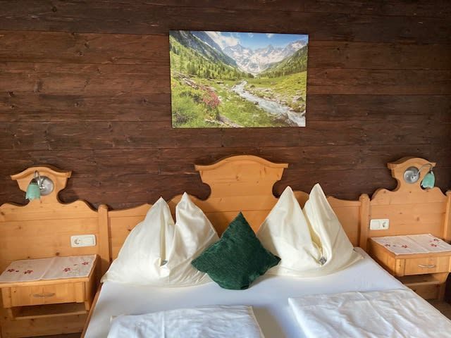 Im Pensionsgebäude befindet sich ein Hallenbad mit Sauna und auch die Gaststube mit Terrasse sind zur Benützung möglich.