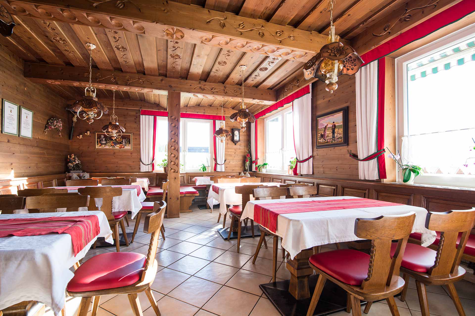 Im Pensionsgebäude befindet sich ein Hallenbad mit Sauna und auch die Gaststube mit Terrasse die benutzt werden können.