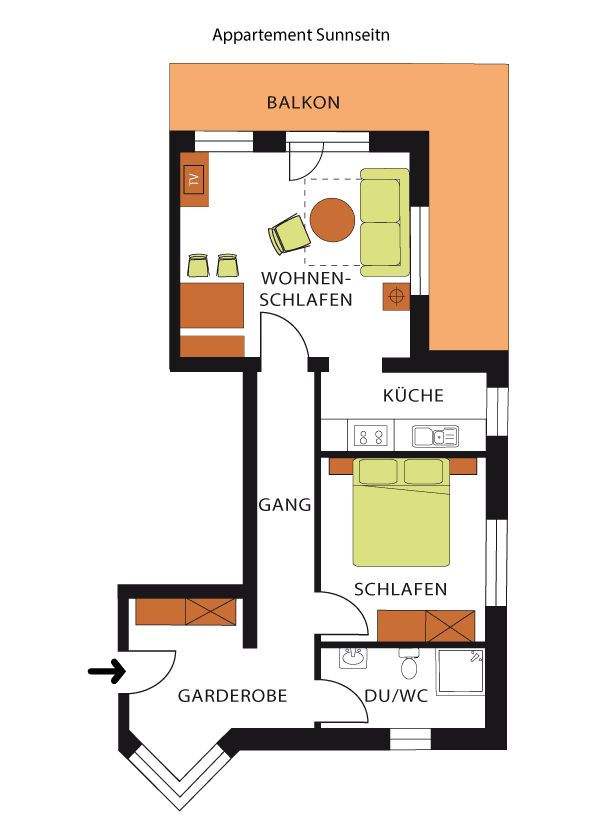 max. 2 Erwachsene und 2 Kinder. Das Appartement Sunnseitn verfügt über einen Wohn- und eigenen separaten Schlafbereich. Das Badezimmer (Dusche und WC) ist großzügig ausgelegt. Der Wohnbereich verfügt über einen Essbereich, eine Schlafcouch für Kinder, eine Küchenzeile sowie einen Balkonzugang.