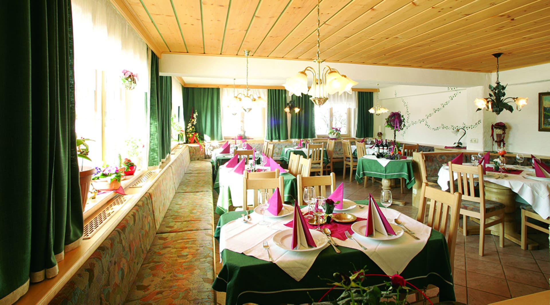 Am großen Frühstücksbuffet finden Sie auch selbsterzeugte Produkte wie Brot, Marmeladen, verschiedene Aufstriche, Käse und Speck. Das Restaurant ist bekannt für seine gute Küche mit regionalen Produkten und frischen Kräutern. Buchen Sie das günstige 4 Gang Menü der Halbpension.