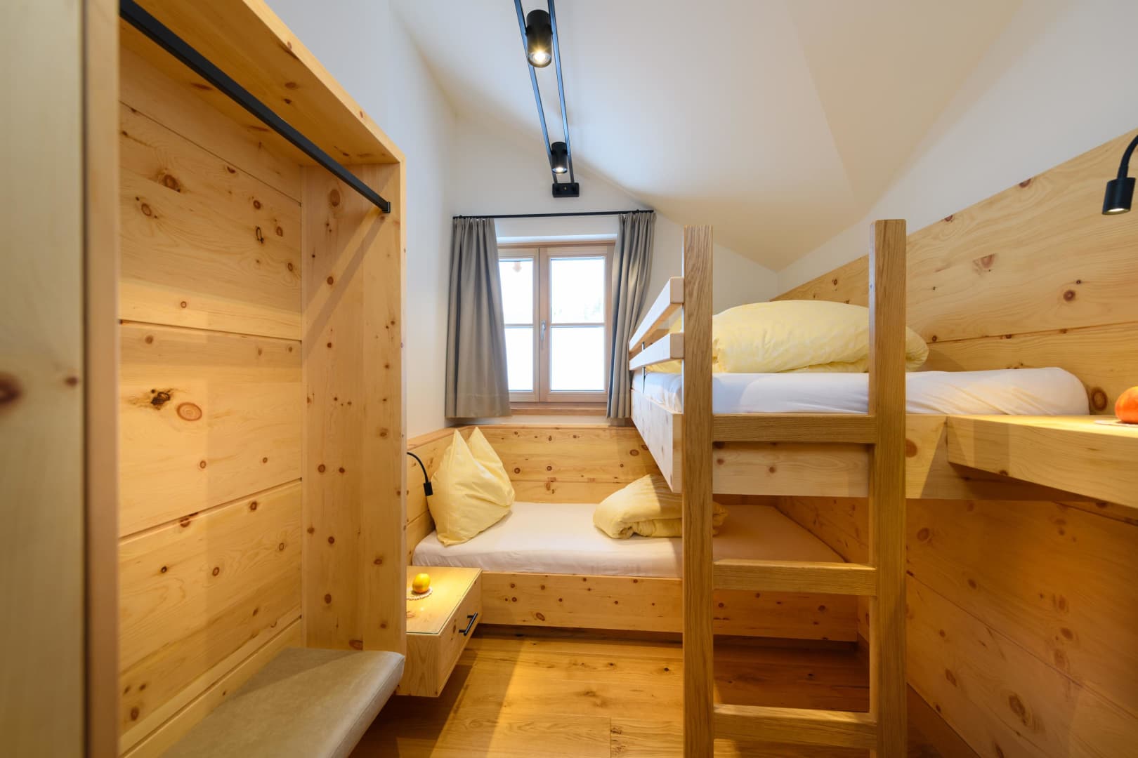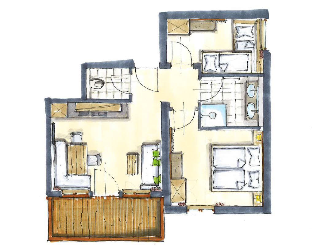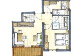 Herzlich willkommen in der geräumigen und einladenden Ferienwohnung Lavendel (52 m²), ideal für 3 bis 5 Personen. Hier erwartet Sie ein harmonisches Elternschlafzimmer mit einem komfortablen Kingsize-Bett und dem wohltuenden Duft von Zirbenholz für einen besonders erholsamen Schlaf. Für unsere jüngeren Gäste gibt es ein liebevoll gestaltetes Kinderzimmer mit einem spannenden Stockbett. Ein gemütliches Schlafsofa im Wohnbereich bietet zusätzliche Flexibilität und Platz. Das moderne Badezimmer überzeugt mit einer erfrischenden Dusche und einem separaten WC. Der offene Wohnbereich beherbergt eine großzügige, voll ausgestattete Wohnküche mit einer gemütlichen Sitzecke und einer einladenden Eckbank – der perfekte Ort für gemeinsame Mahlzeiten und entspannte Abende. In der Küche finden Sie alles, was das Herz begehrt: einen 4-Platten-Herd, Backofen, Mikrowelle, Toaster, Wasserkocher sowie einen Kühlschrank mit Gefrierfach und umfassende Küchenausstattung. Treten Sie hinaus auf Ihren privaten Balkon, wo Sie auf komfortablen Sitzgelegenheiten die ersten Sonnenstrahlen des Tages beim Frühstück genießen und den atemberaubenden Blick auf die umliegende Berglandschaft auf sich wirken lassen können. Kostenloses Highspeed-WLAN, Sat-TV und ein Radio sorgen für Unterhaltung und Konnektivität. Selbstverständlich ist die gesamte Wohnung eine Nichtraucherzone.