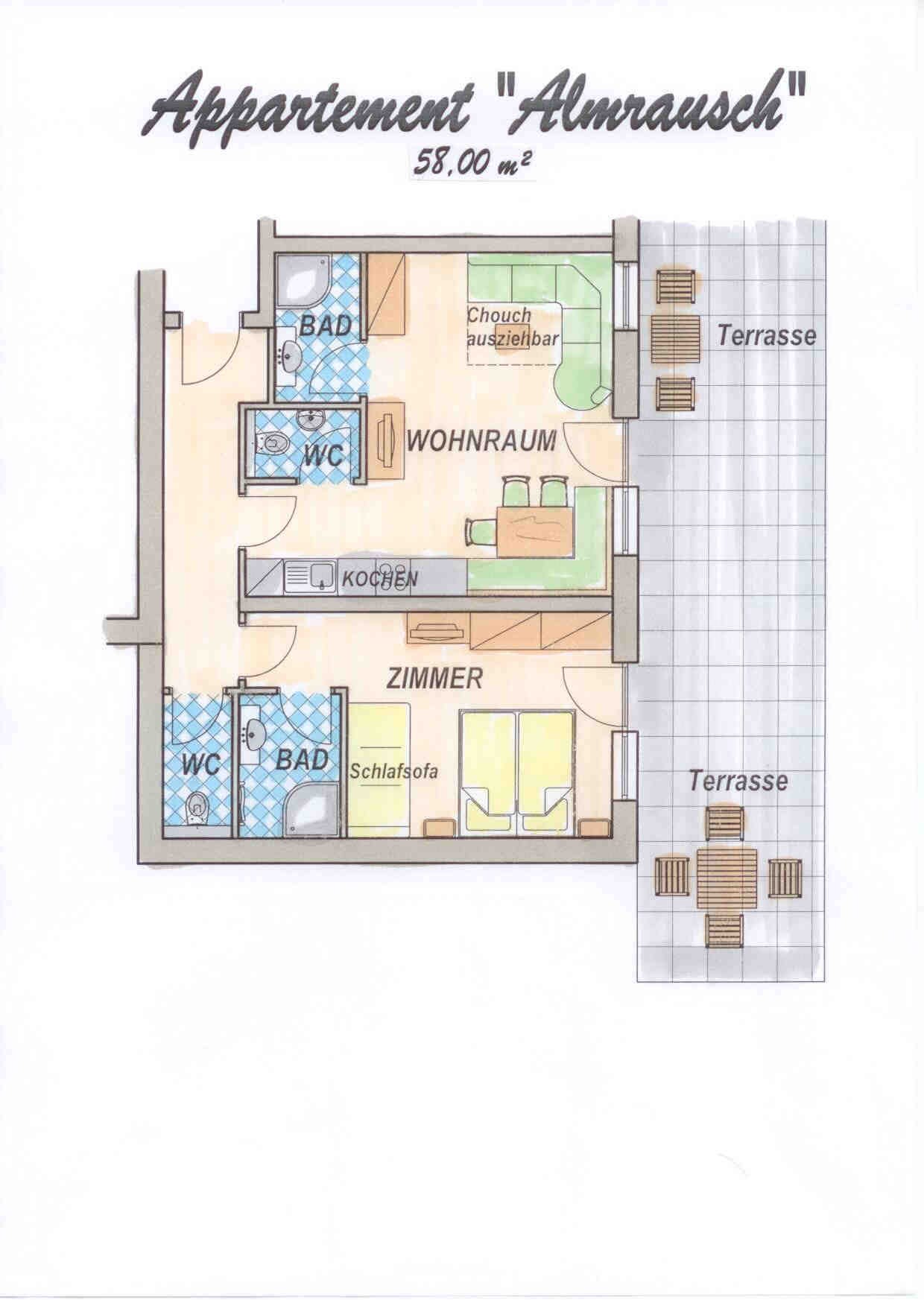 Unsere großzügige Nichtraucher-Ferienwohnung bietet auf 70 m² komfortabel Platz für 4 bis 5 Personen.