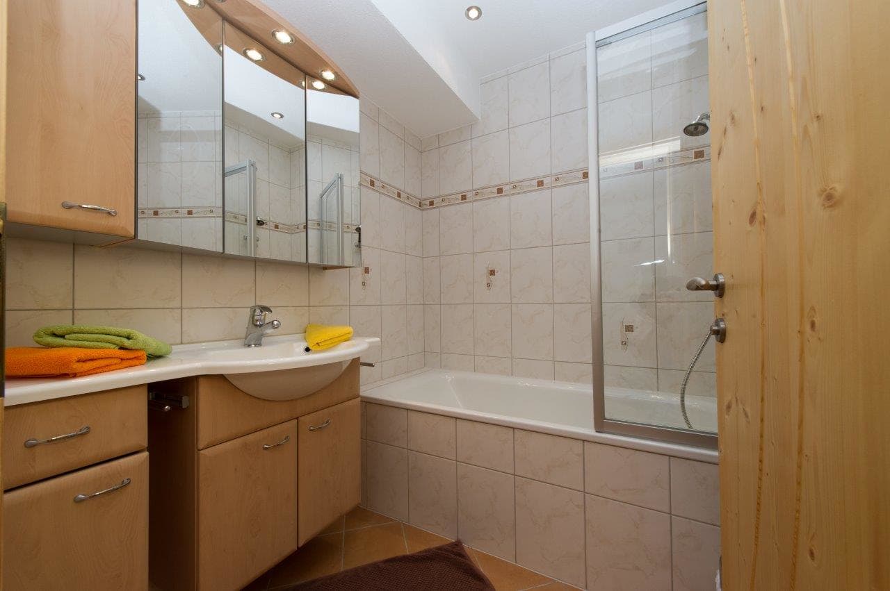 Für Ihren Komfort stehen Ihnen ein Badezimmer mit Badewanne, eine separate Dusche sowie ein separates WC zur Verfügung. Beide Bäder sind mit einem Fön ausgestattet, Bade- und Handtücher stellen wir natürlich auch zur Verfügung.