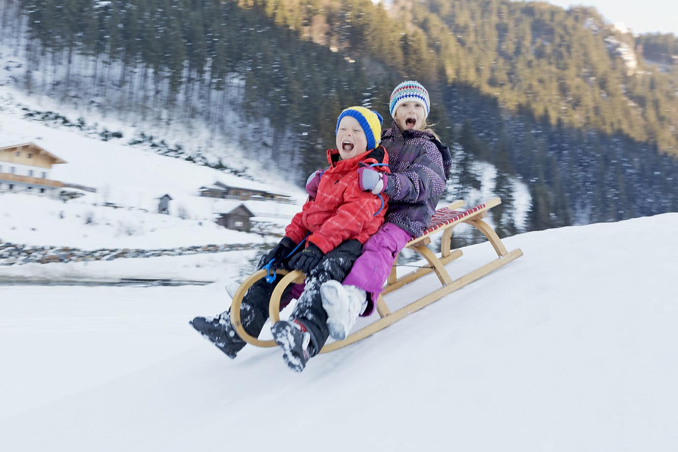 Besonders romantisch wird es bei einer Pferdeschlittenfahrt: Warm eingepackt gleiten Sie durch die glitzernde Landschaft und tauchen in die winterliche Bergwelt ein. Und direkt rund um unser Haus finden Kinder – und natürlich auch Erwachsene – genug Platz zum Rodeln, Bobfahren oder um einfach einen Schneemann zu bauen.