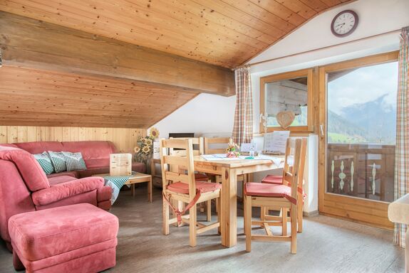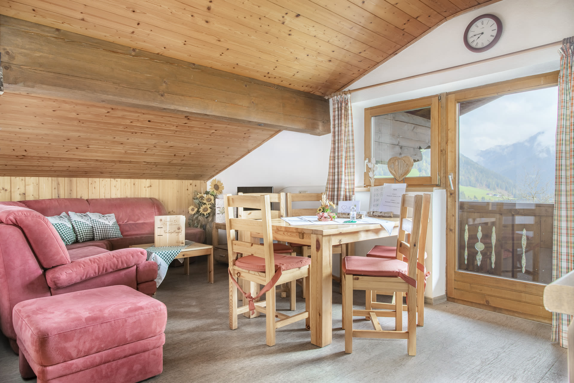 Unsere liebevoll eingerichtete Ferienwohnung Frommerkogel (55 m²) ist ideal für Familien und bietet Platz für 1–5 Personen. Vom Balkon aus genießen Sie einen traumhaften Ausblick auf den Dachstein und das Tennengebirge.