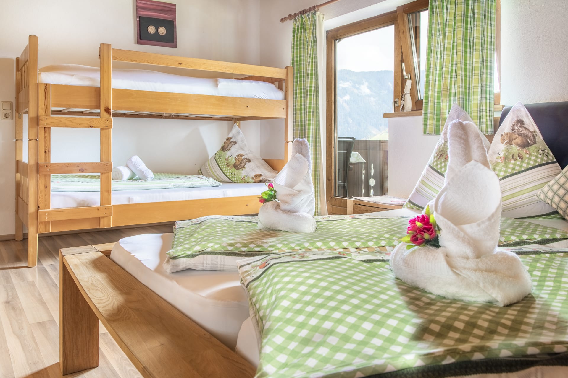 • Großzügiges Familienschlafzimmer mit Doppelbett, Stockbett und Einzelbett