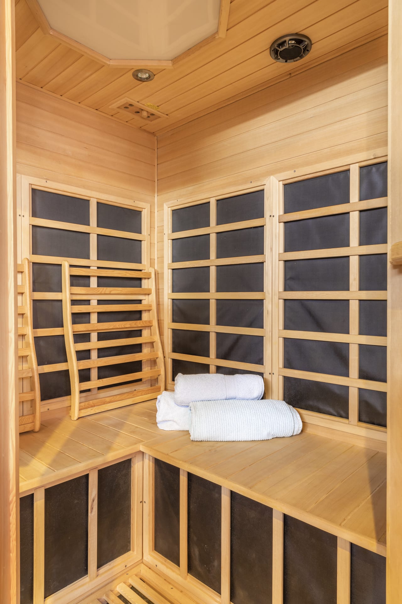 Für Ihr Wohlbefinden stehen außerdem eine Infrarotkabine sowie ein kleiner Fitnessraum bereit. Bettwäsche und Handtücher sind selbstverständlich inklusive.