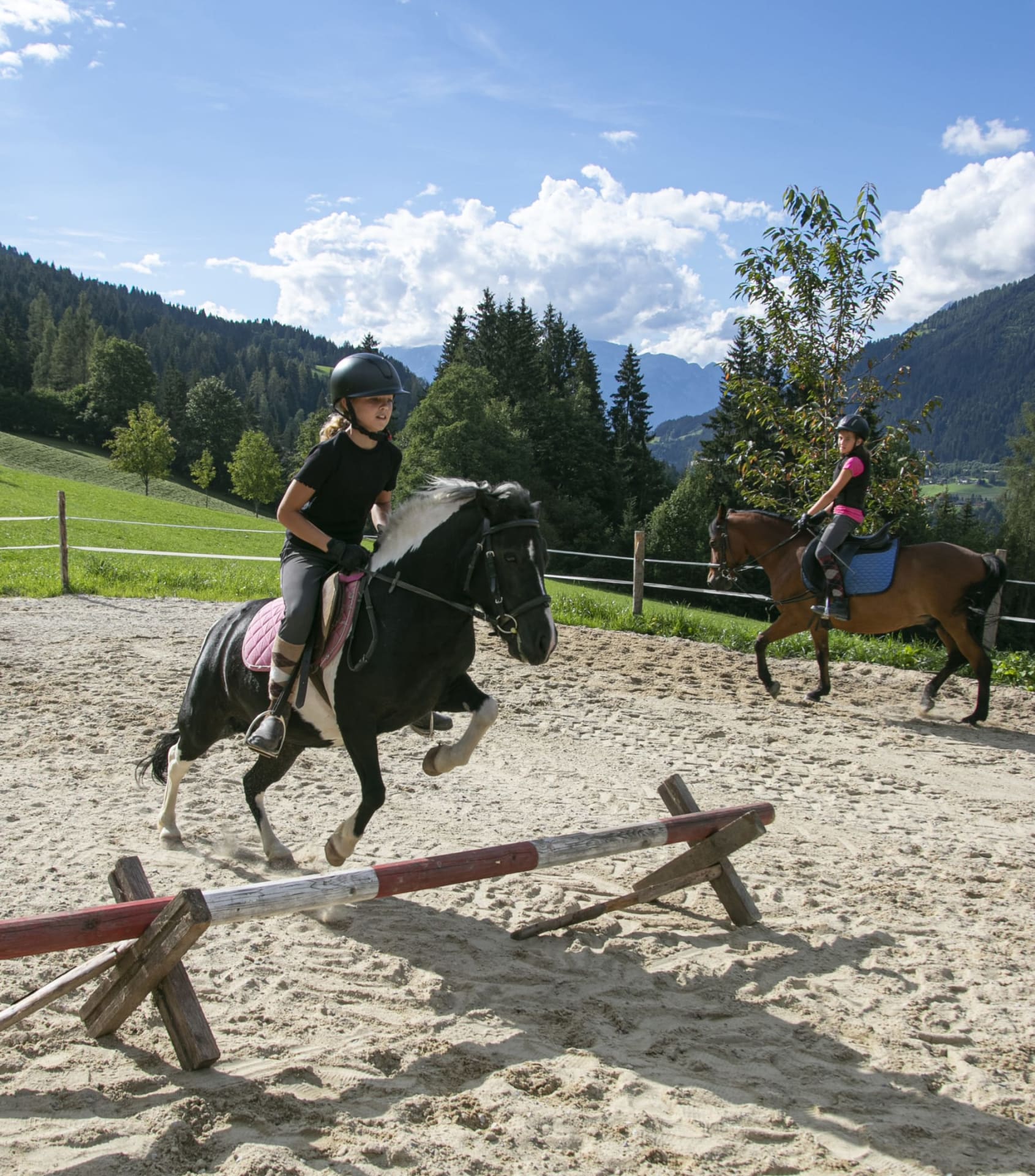 Pool, Reiten, Spielplatz mit Trampolin, Tischtennis, Boulderwand, viele Kleintiere zum Streicheln und Go-Karts sorgen für Spaß und Abenteuer.
