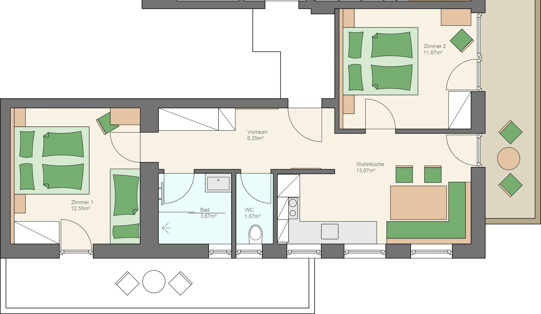 Wir bieten Ihnen 5 stilvoll neu eingerichtete Ferienwohnungen für 2-8 Personen mit je zwei getrennten Schlafzimmern, teilweise zwei getrennten Badzimmern (alternativ: Badezimmer und WC getrennt), voll ausgestatteten Küchen, Kabel TV, und kostenlosem W-Lan am gesamten Hofareal.