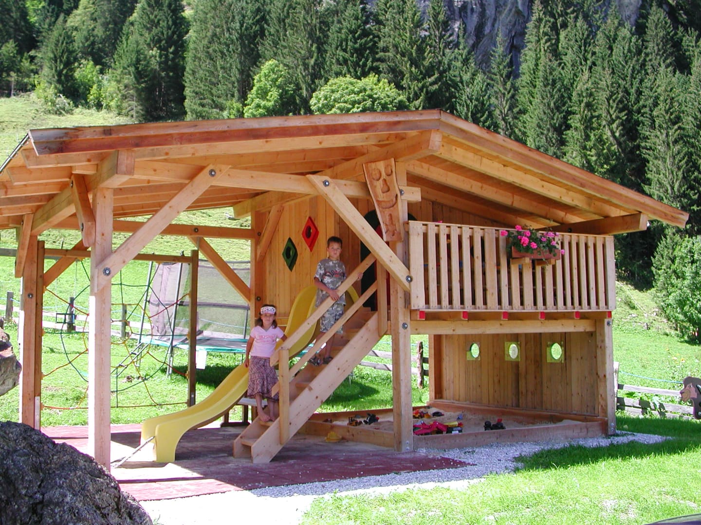 • Kindererlebnis-Haus mit großem Sandkasten, Kletternetz, Rutsche, Spielhütte, Riesentrampolin, Schaukel mit Kindersitz, Tret-Traktoren mit Anhänger, Sandbagger