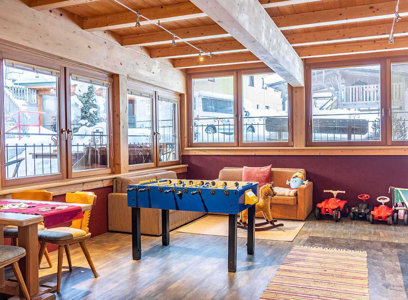 • „Spiel-Wintergarten“ (60 m²) mit vielen Unterhaltungsmöglichkeiten, Tischfußball, Tischtennis, Kinderspielsachen.