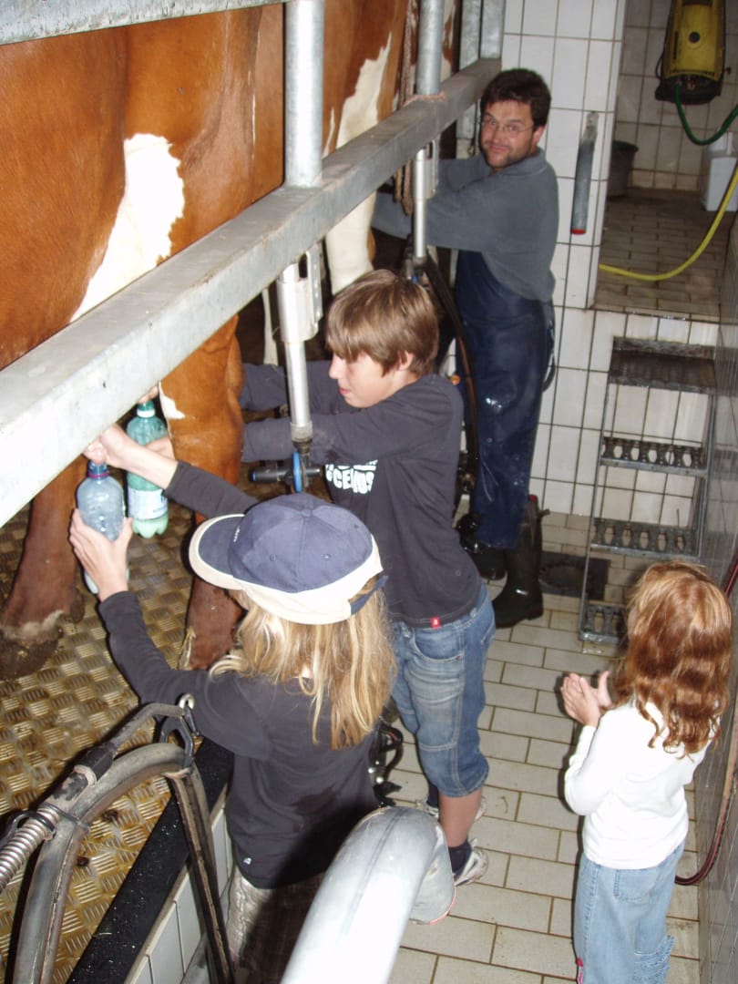 • Richtiger Milchviehbauernhof: Kinder können beim Kälber Füttern und Kühe Melken mit dabei sein