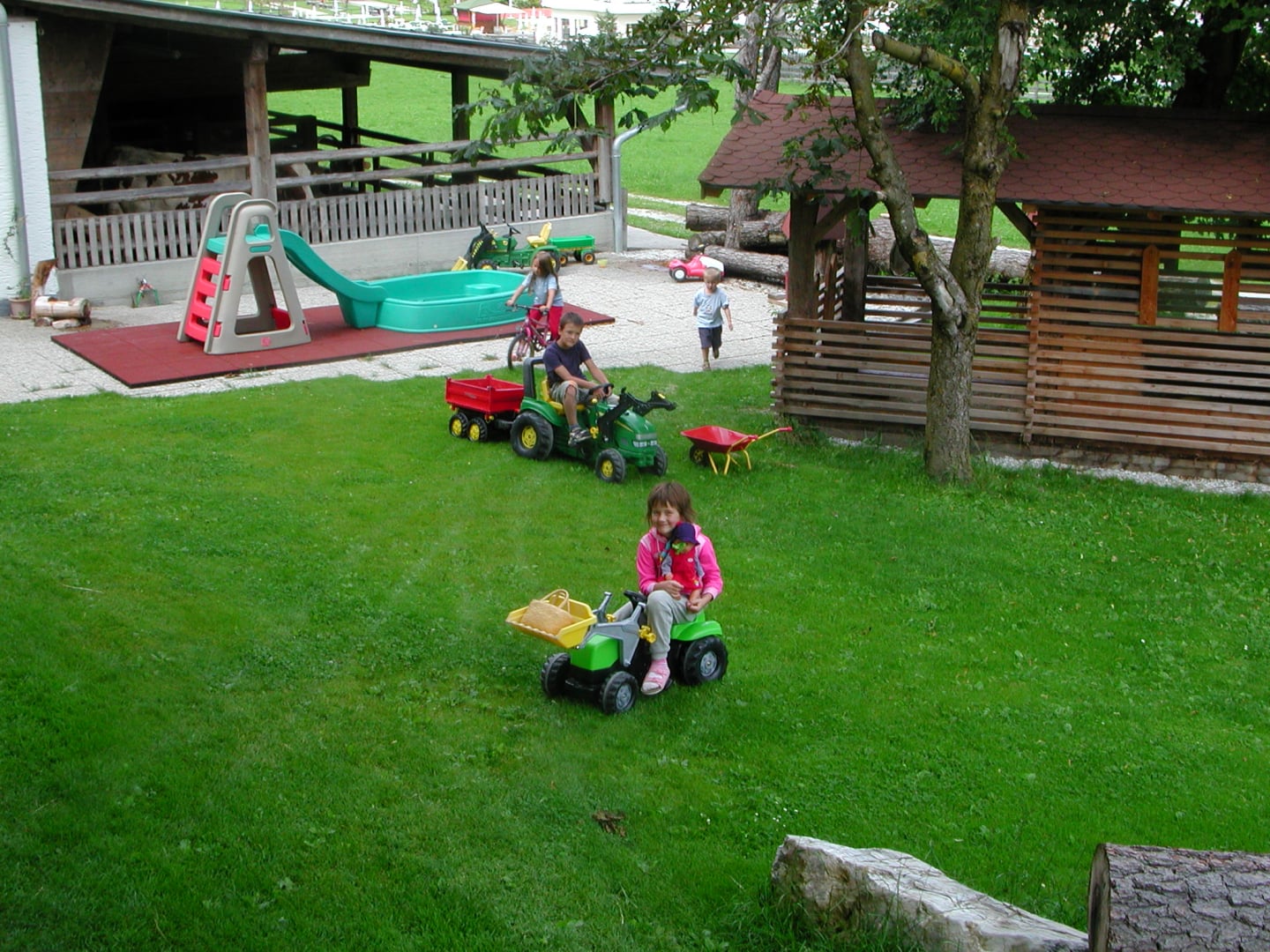• Kindererlebnis-Haus mit großem Sandkasten, Kletternetz, Rutsche, Spielhütte, Riesentrampolin, Schaukel mit Kindersitz, Tret-Traktoren mit Anhänger, Sandbagger und viele Kinderspielsachen.