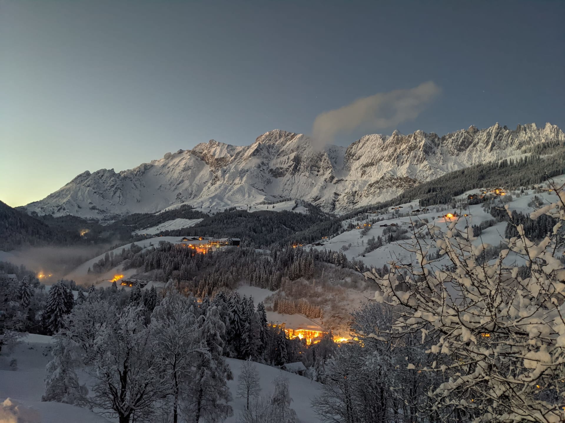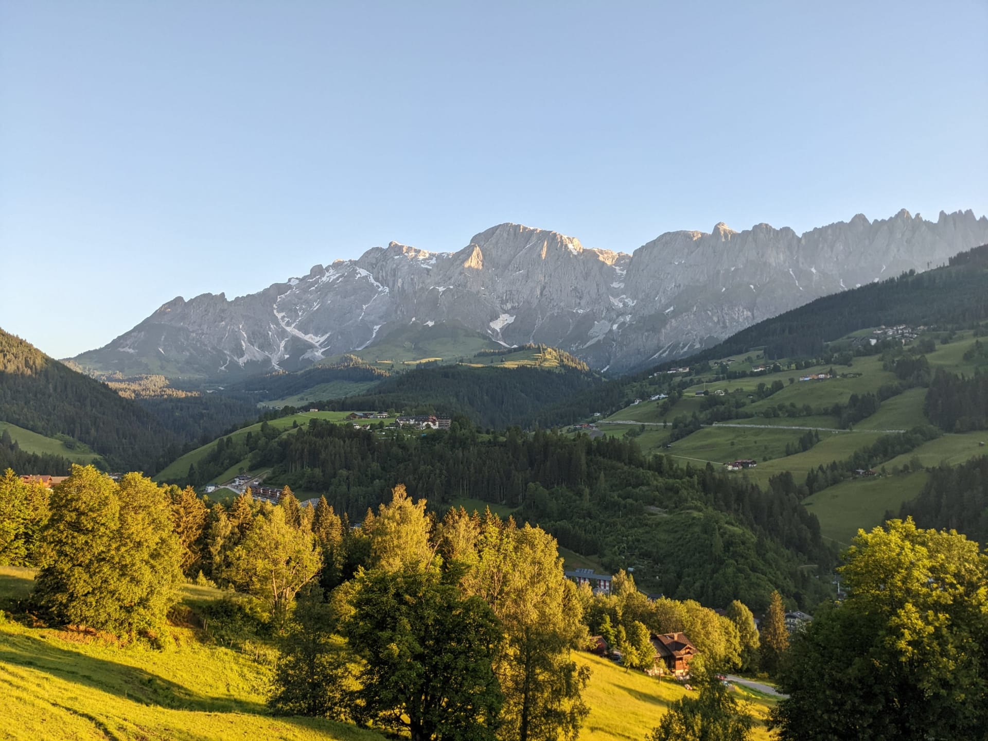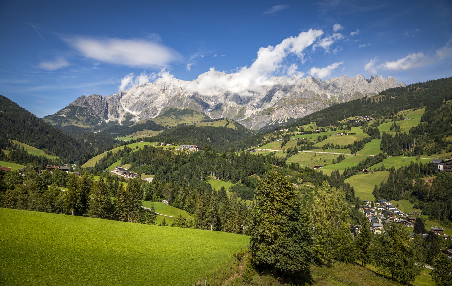 Unser Schlöglgut steht für Urlaub mit einem atemberaubenden Ausblick auf den Schneeberg über das Hochkönigmassiv bis hin zum Dachstein in 40 km Entfernung.