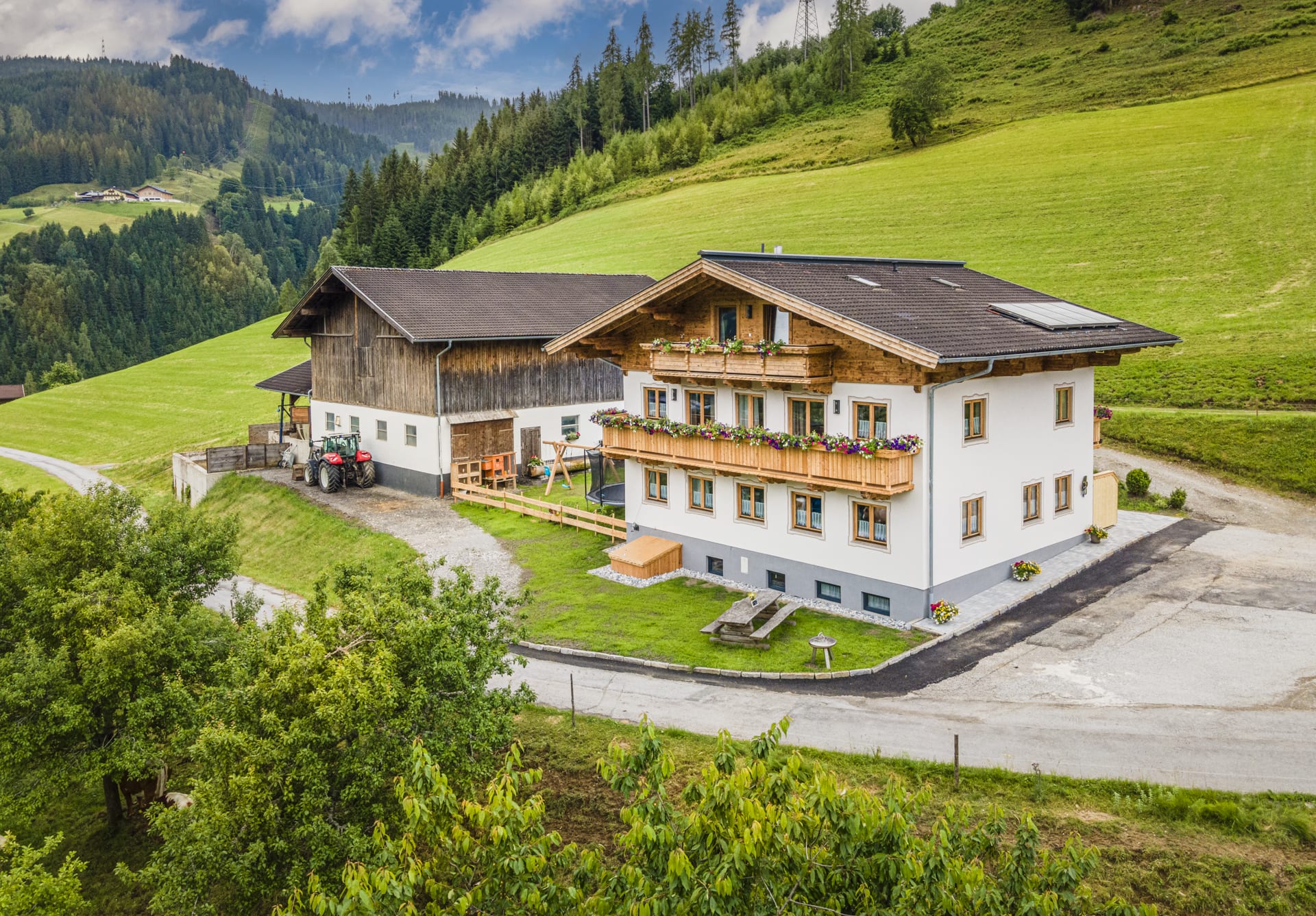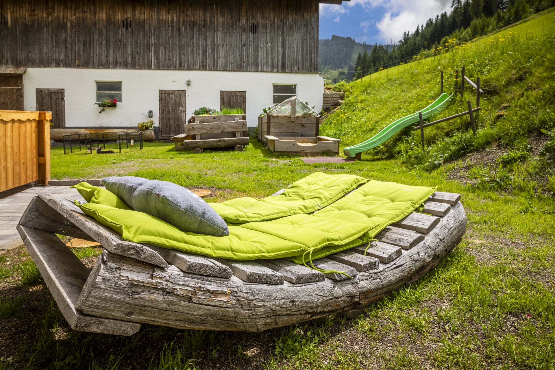 Unser Hof liegt in ruhiger Alleinlage umgeben von saftigen, grünen Bergwiesen im Sommer und tief verschneiten Landschaften und reinster Bergluft im Winter. Unser Hof verfügt auch über eigenes Quellwasser. Die besten Voraussetzungen also für einen erholsamen Urlaub in familiärer Atmosphäre.