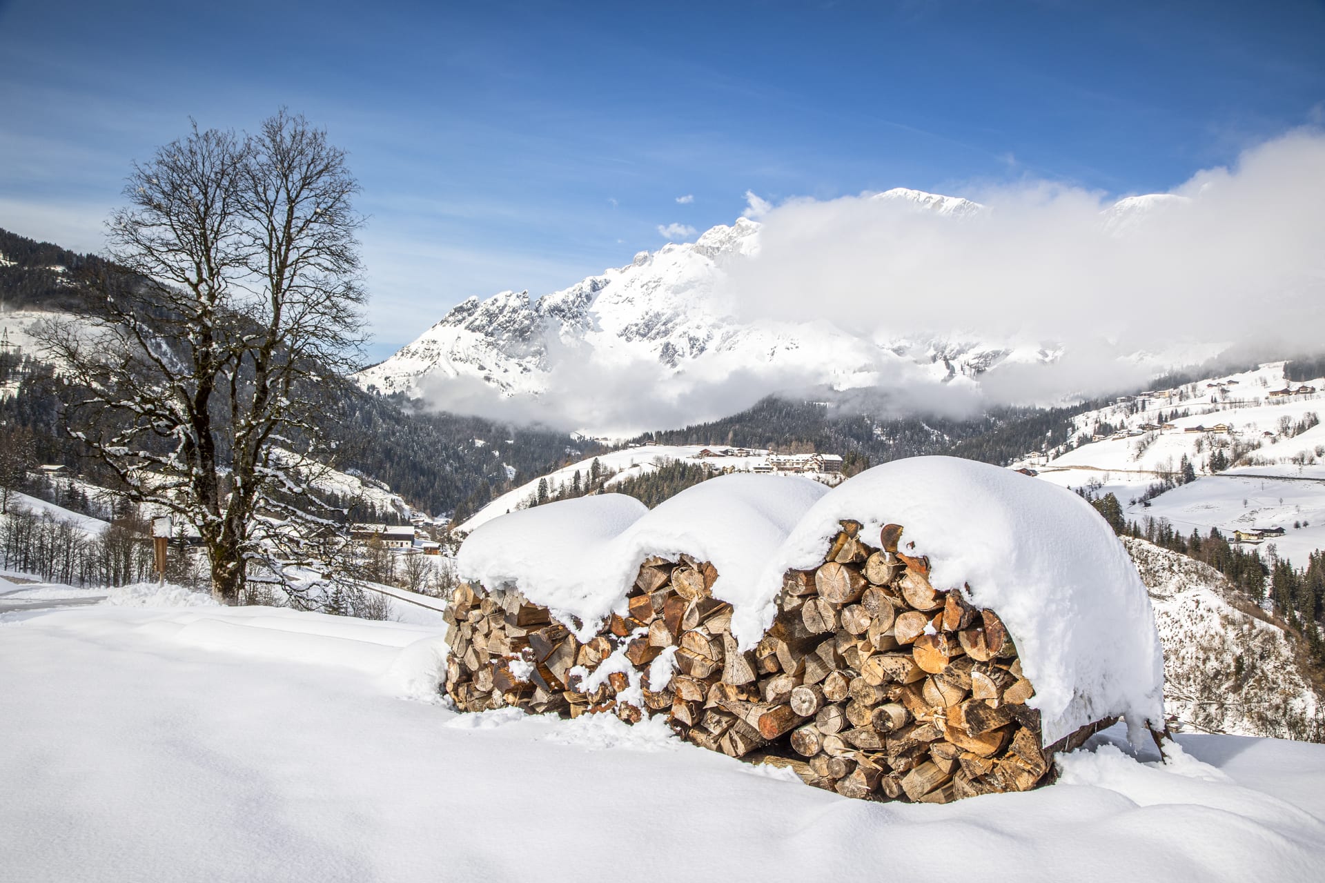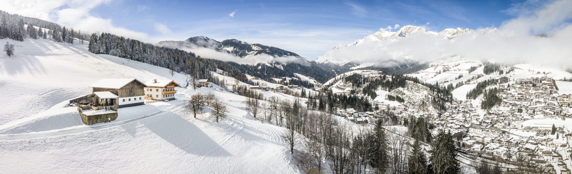 Im Herbst und Winter starten Sie Ihre Wanderung, Mountainbike oder Ski-Tour direkt von der Haustüre weg. Oder erleben Sie einen unvergesslichen Schitag in dem ca. 2 km entfernten Skigebiet Hochkönig, mit bis zu 120 km bestens präparierten Pisten und 40 km gespurten Langlaufloipen. Für alle Gäste, die abseits der Skipisten erlebnisreiche Tage bei uns verbringen möchten, können wir gemütliche Pferdekutschenfahrten, Schlittenfahren auf mehreren Rodelbahnen oder Winterwandern in der glitzernden Winterlandschaft anbieten.