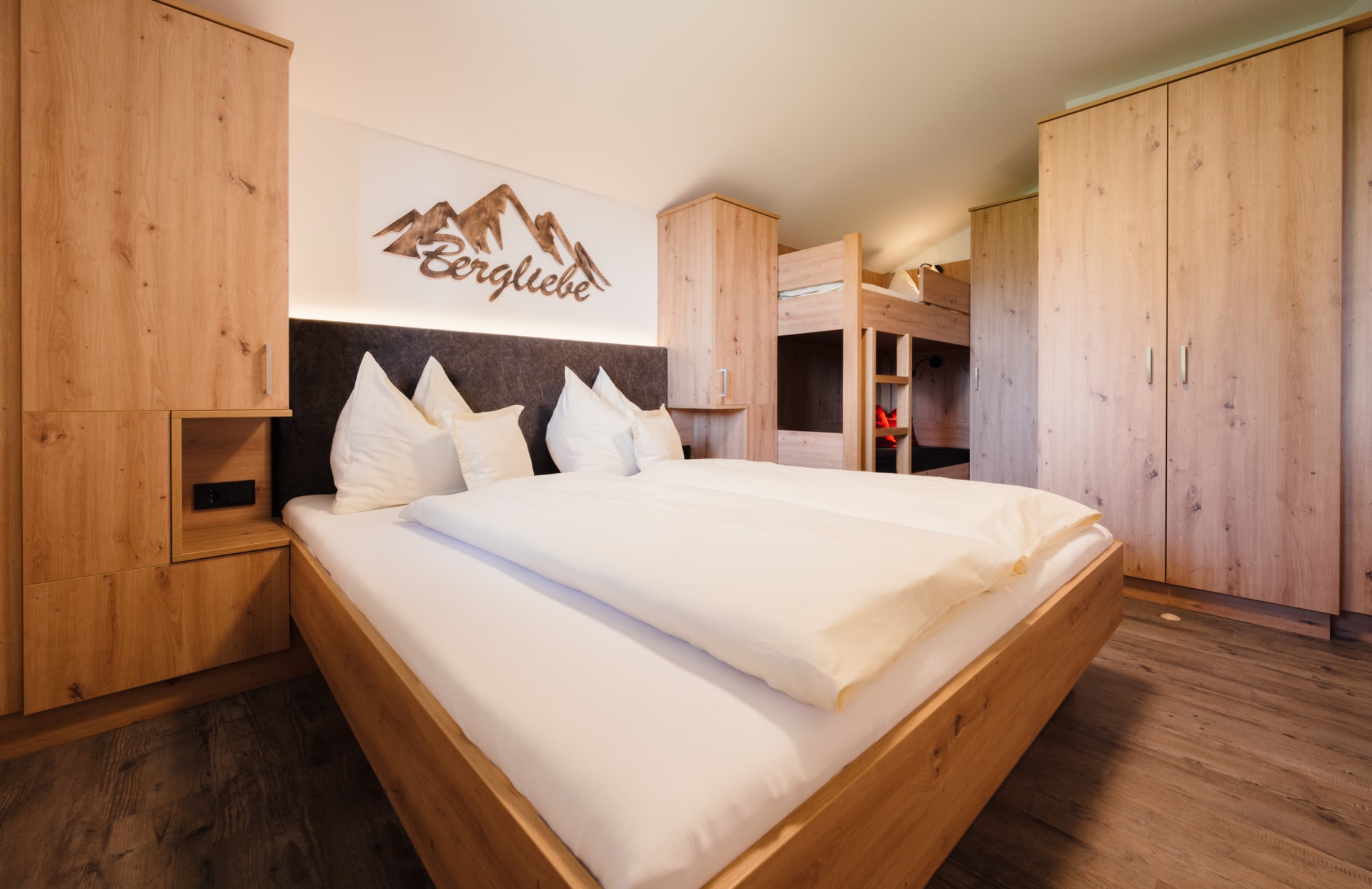 • 1 Schlafzimmer mit Doppelbett sowie Stockbett