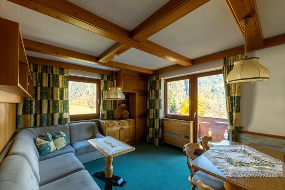 Gemütliches Appartement mit 1 Wohnzimmer mit Doppelschlafcouch, inkl. Eßecke, Sitzgruppe, Flat-TV, Telefon, 2 Doppelschlafzimmer, Bad, WC, Haarfön, Kleinküche, Vorraum, Garderobe und Südbalkon. Größe: ca. 60 m².