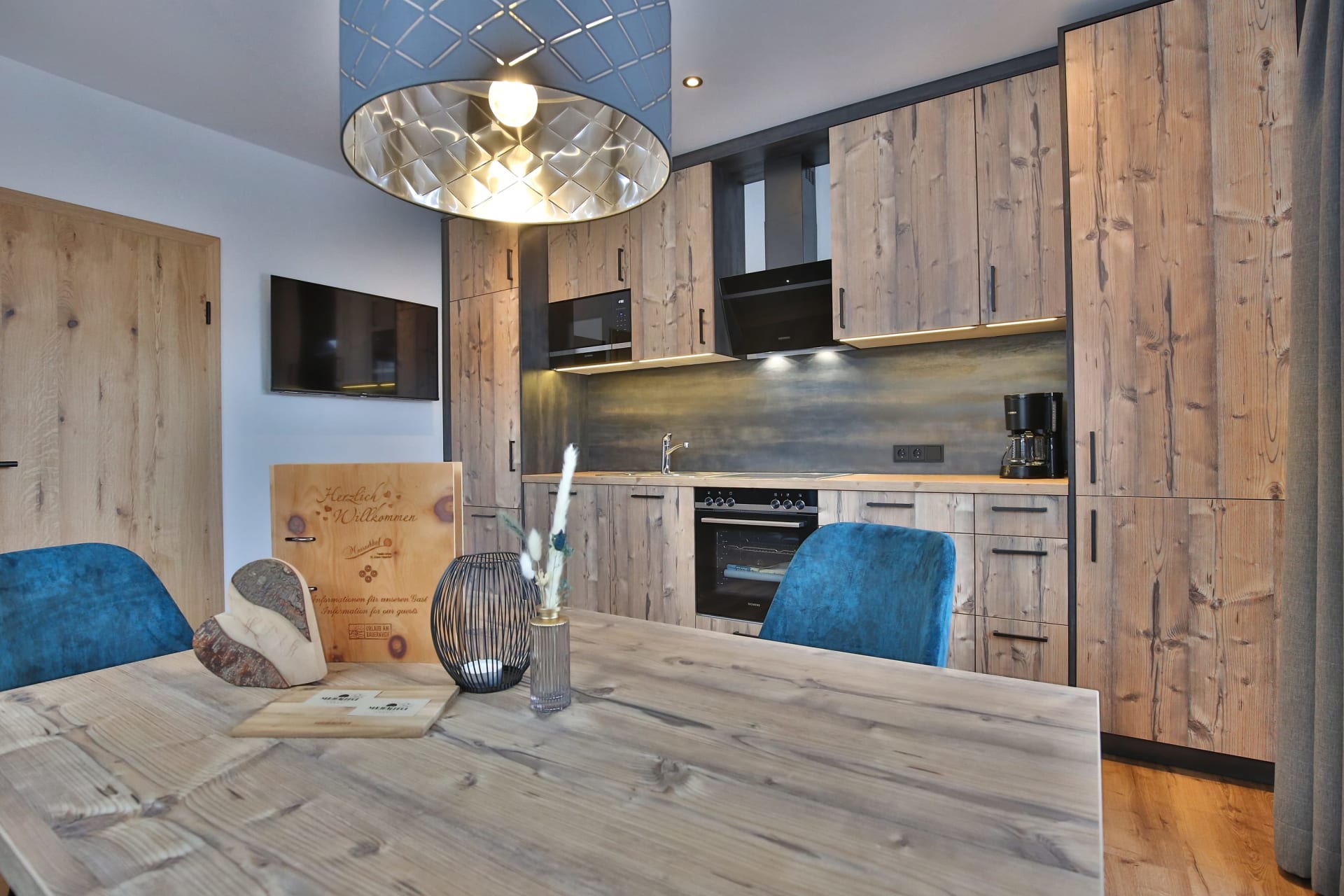 Im gewohnten Maurachhof Qualitätsstandard ist dieses schöne Appartement ausgestattet mit 2 Schlafräume , Badezimmer mit Dusche, Wc, und Haarfön, erstklassig ausgestattete Küche mit gemütlicher Sitzecke und Sofa, Mikrowelle, Backofen, Kühlschrank mit Gefrierfach, Geschirrspülmaschine, Wasserkocher, Kaffeemaschine, Backofen, Safe, Flat - TV in Küche und Schlafzimmer, W - LAN und Terrasse mit Blick zum Tal.