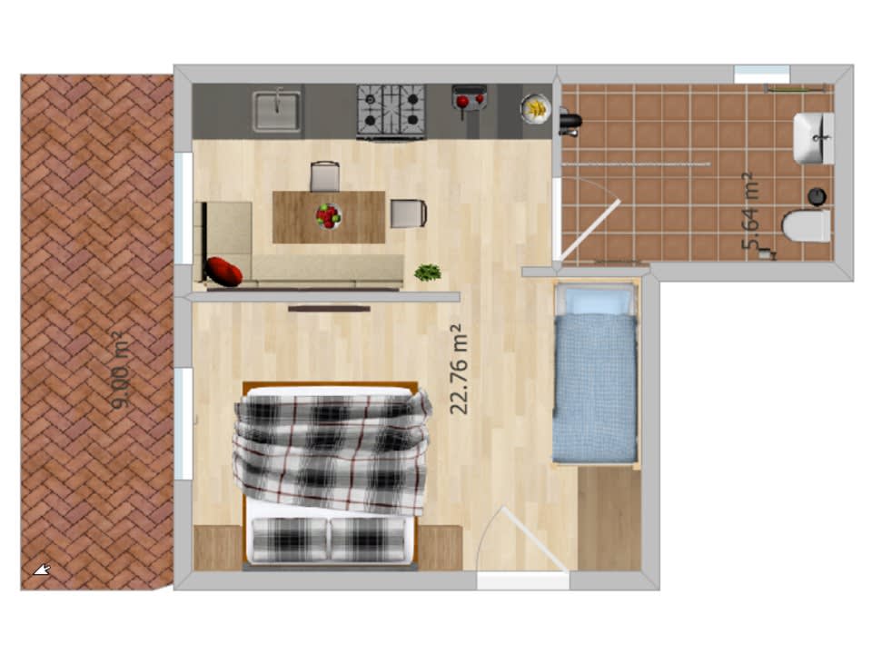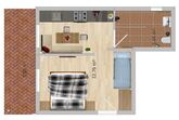 •Geräumiger Wohnschlafraum mit vier Betten