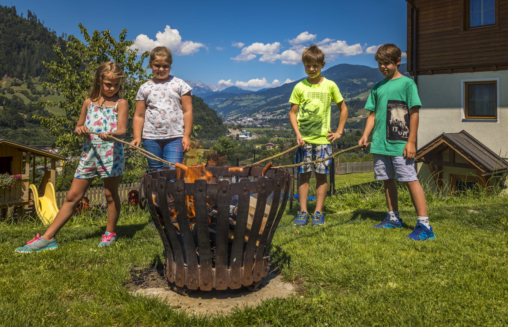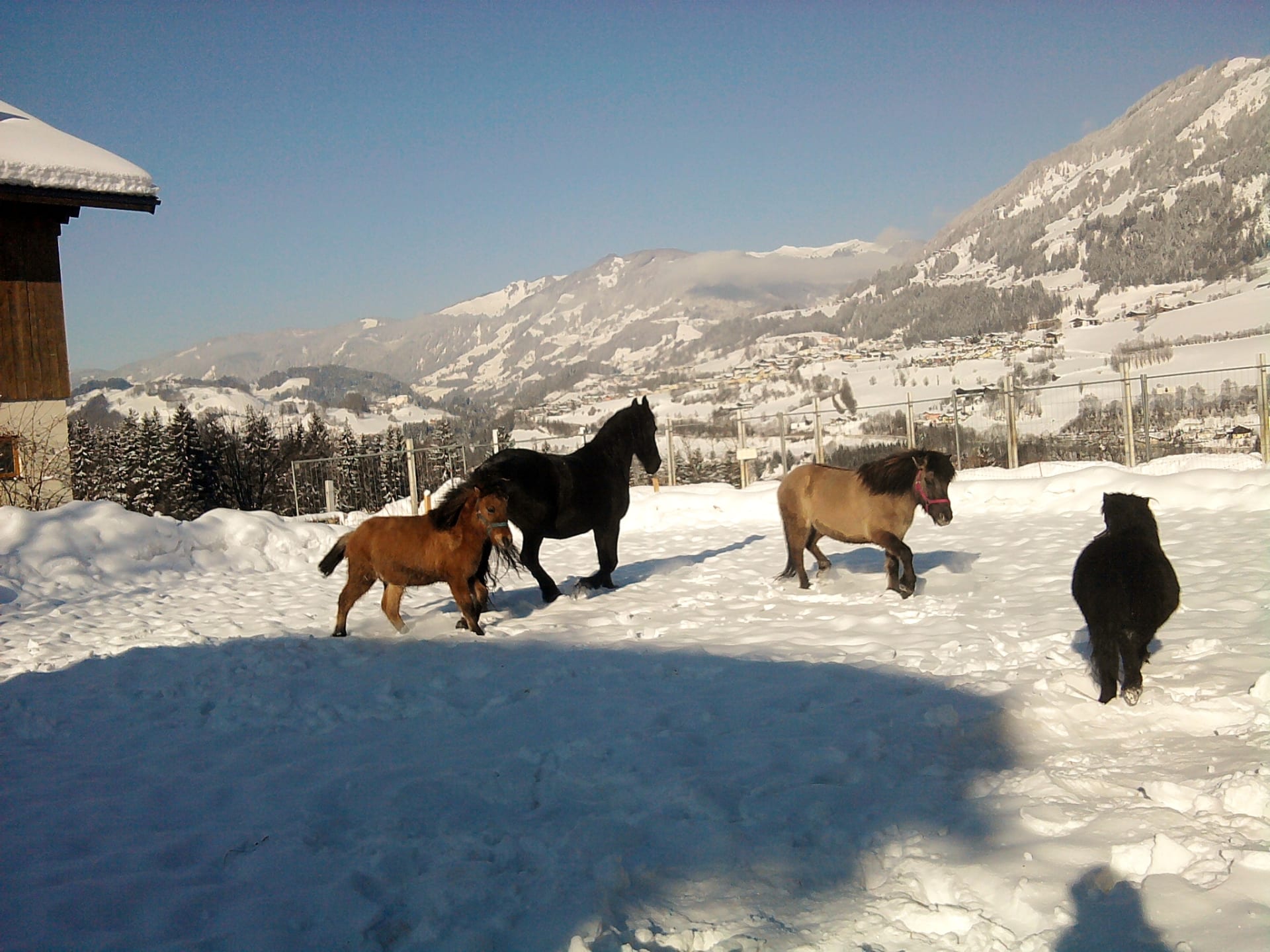 Die Kinder haben Spaß beim Rutschen und Herumtollen vor dem Haus. Bei guter Schneelage führt unsere Rodelbahn direkt vom Haus hinauf zum Wald. Für ihre Schiausrüstung halten wir einen extra beheizten Raum mit Schuhtrockner zur Verfügung.