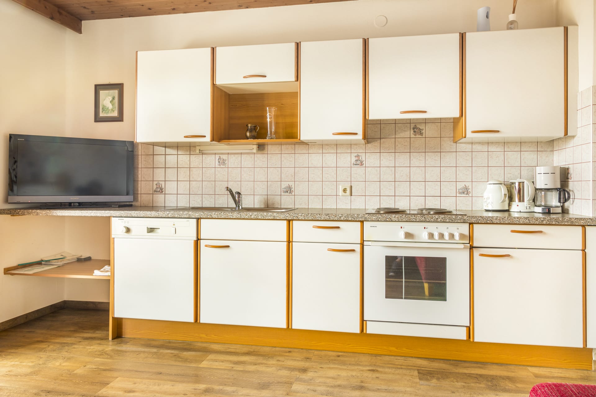 Zur Ausstattung gehören Sat-TV, kostenloses WLAN, eine voll ausgestattete Wohnküche, mit Geschirrspüler, Sitzecke, Sofa, Sat-TV und ein großer Balkon mit traumhafter Aussicht auf die Berge.