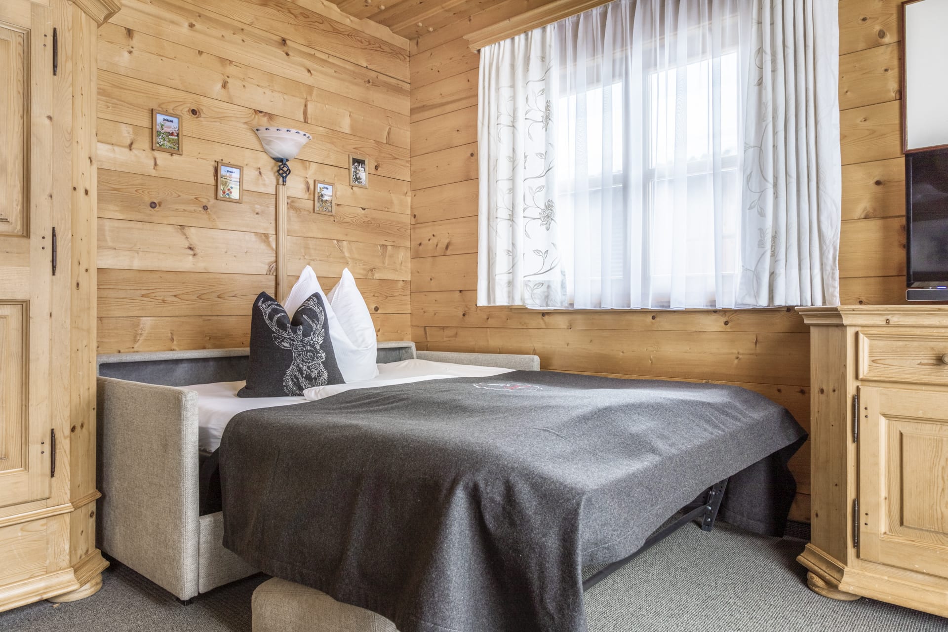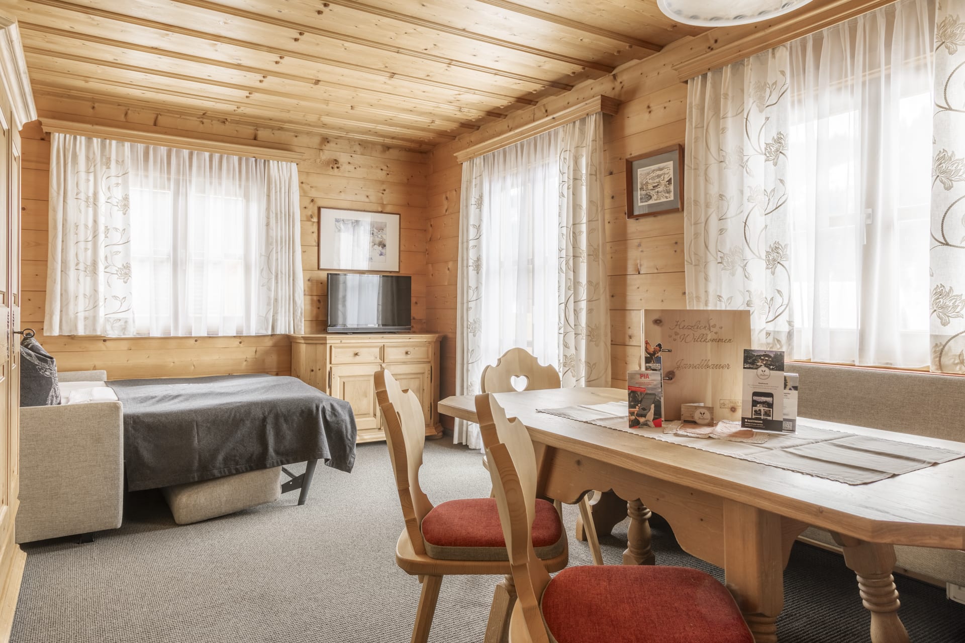 • großer Wohnraum mit ausziehbarer Couch, Sitzecke und Kabel-TV