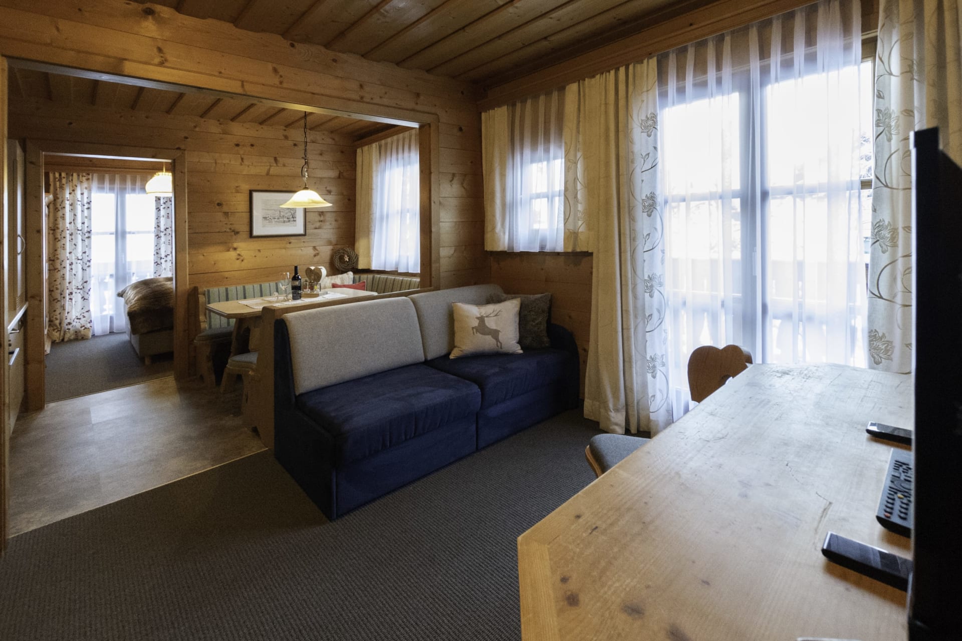 • 2 getrennte Schlafräume (1 x Doppelbett, 2x Einzelbetten)