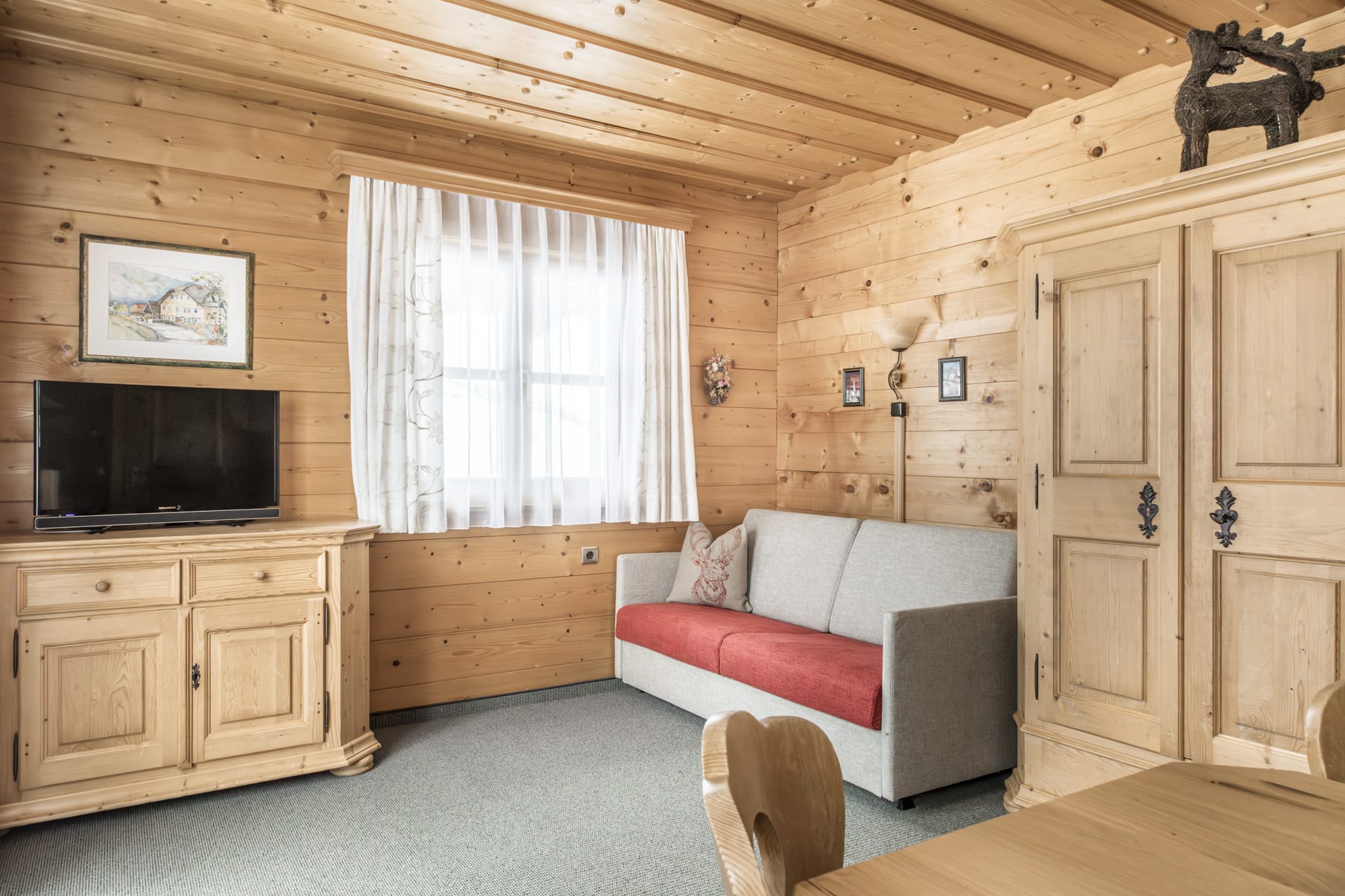 • 1 großer Wohnraum mit ausziehbarer Couch, Sitzecke und Kabel-TV