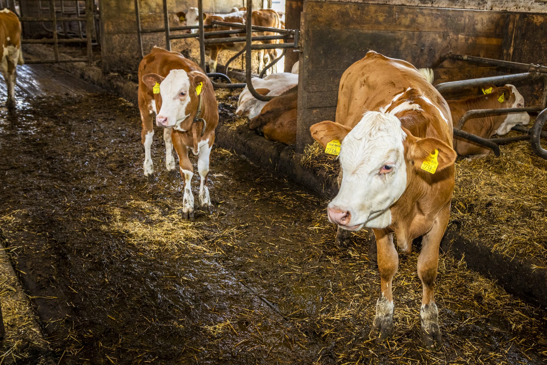 Zum Hof gehört der neu errichtete Laufstall mit Kühen, Kälbchen, Zwergziegen, Enten und unserem Hund Cindy.