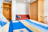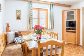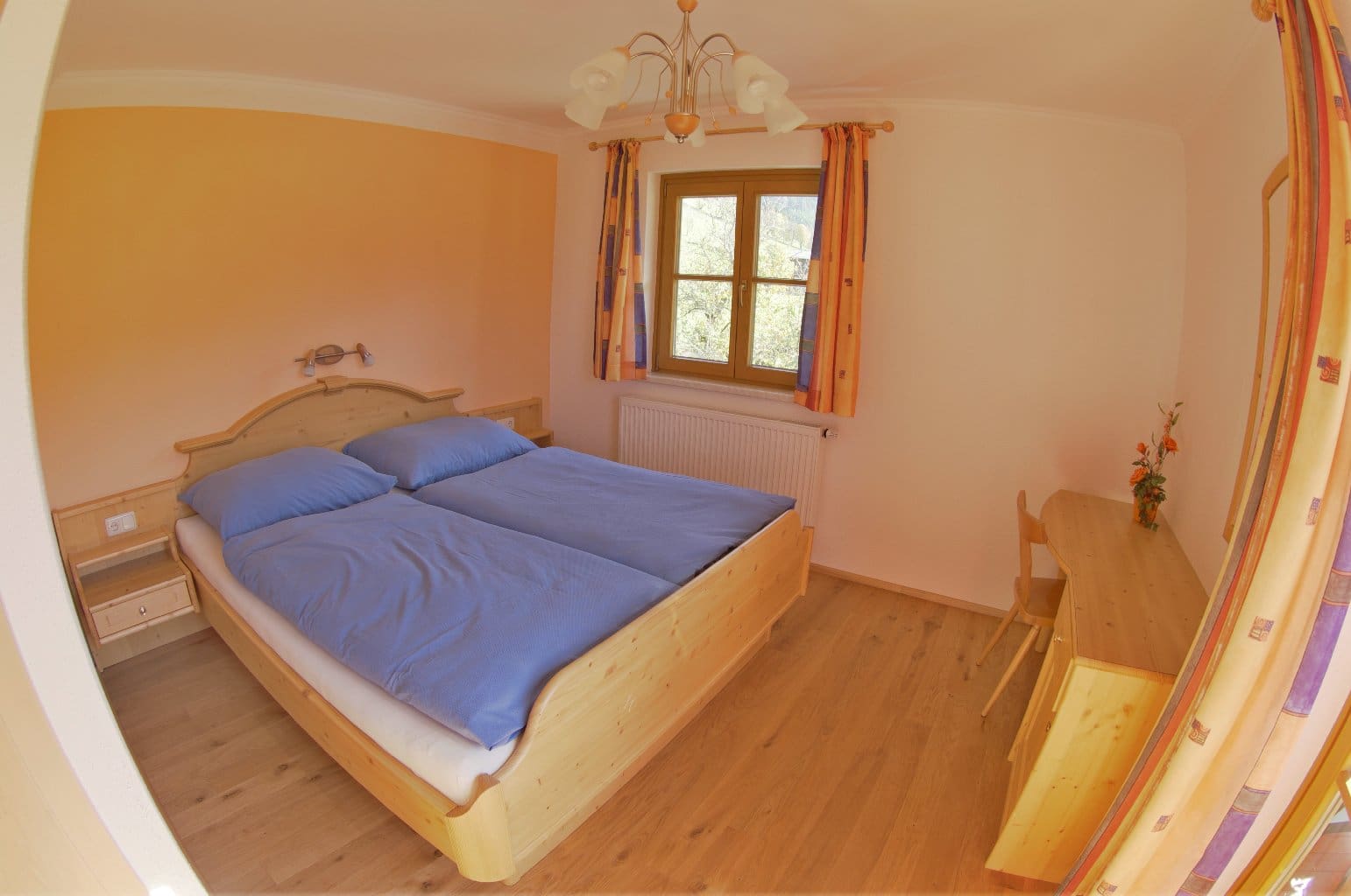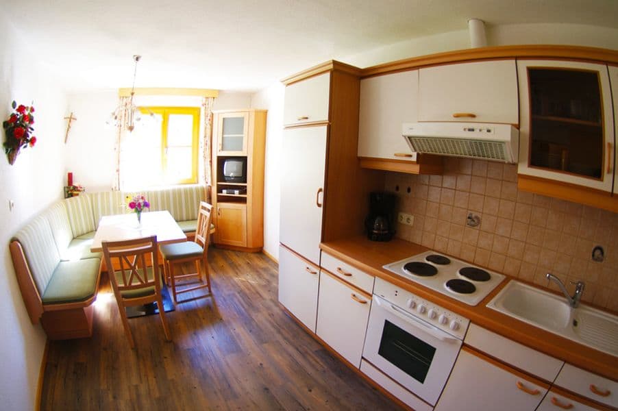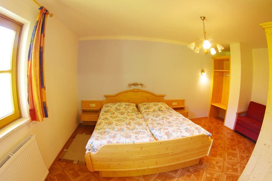 Sehr große Ferienwohnung mit hellen Vollholzmöbeln eingerichtet. Zwei getrennte Schlafzimmer in hellblau ausgemalt. Große Wohnküche, mit Rieseneckbank, Küchenblock voll ausgestattet mit Geschirr, E-Herd, Backrohr, Dustabzug, Kaffeemaschine, Wasserkocher, Eierkocher, Toaster. Balkon auf Ostseite (Sonnenaufgang) mit Blick auf das Tennengebirge. Sat-TV, W-LAN. Großes Badezimmer mit Doppelwaschbecken und offener Dusche (ganz neu). WC extra.