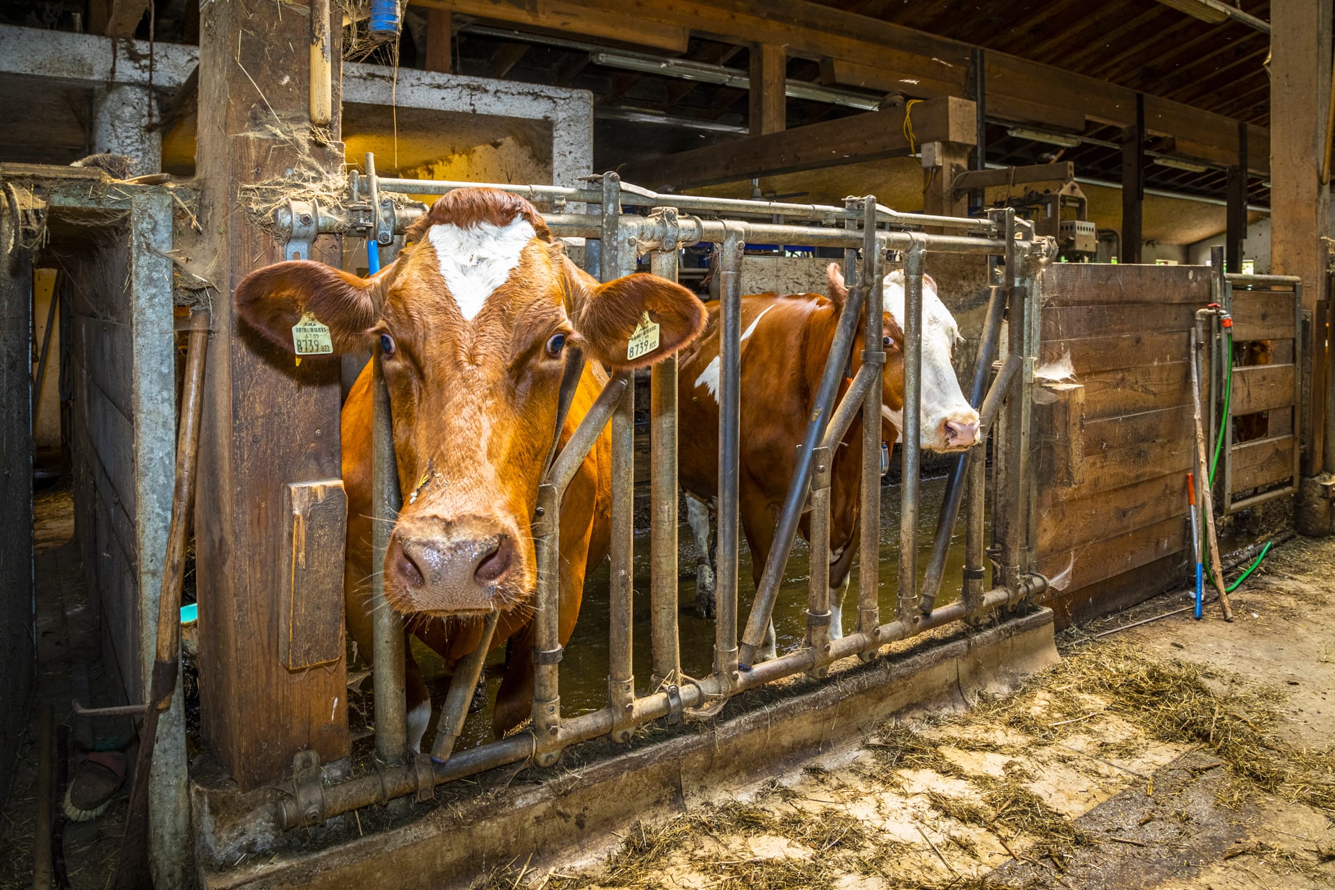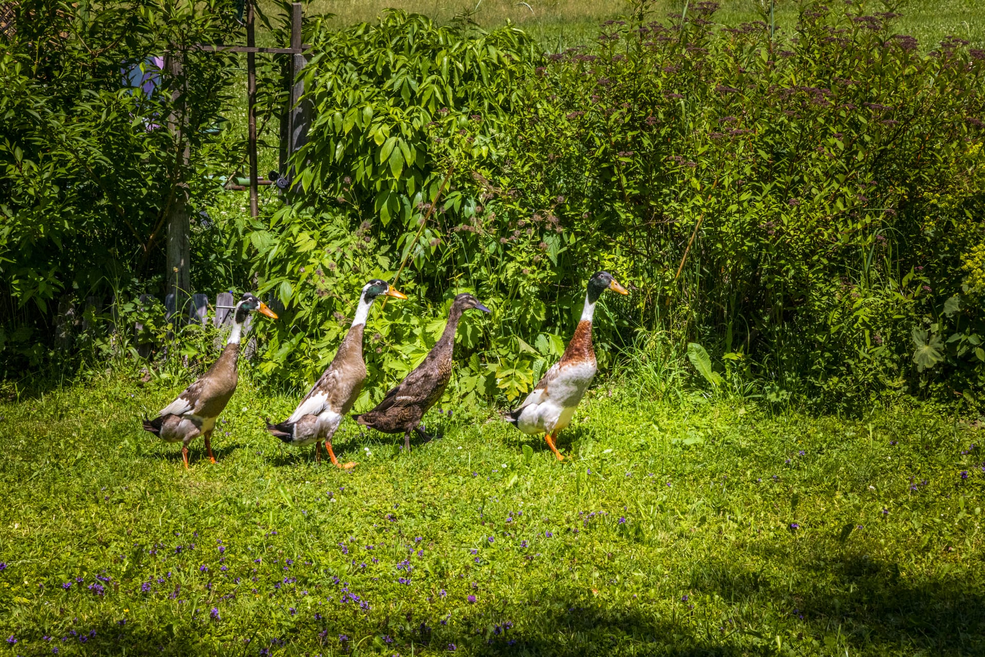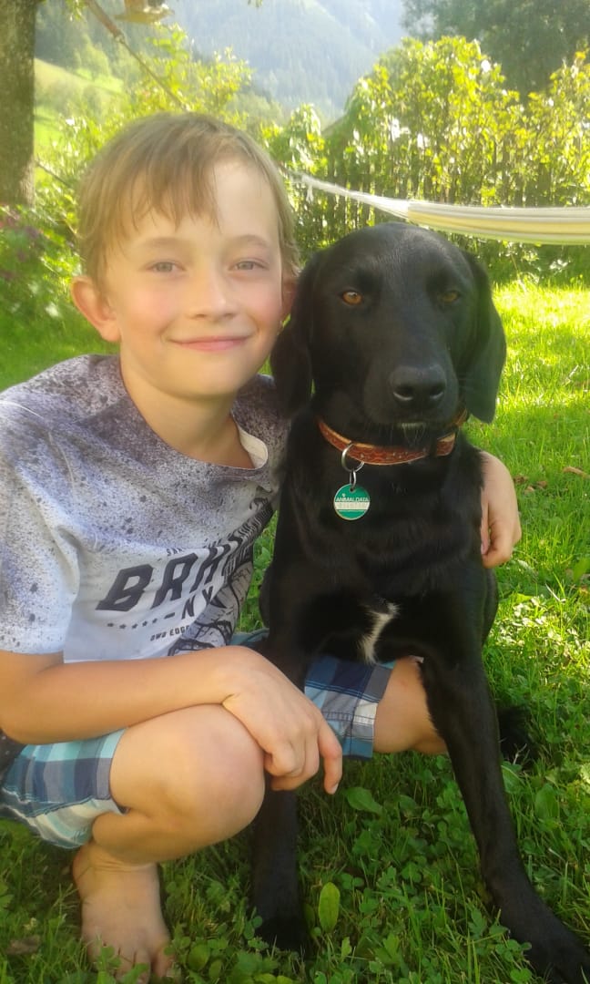 Zum Hof gehört der neu errichtete Laufstall mit Kühen, Kälbchen, Zwergziegen, Enten und unserem Hund Cindy.